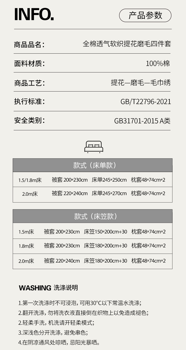 1.5m床笠款四件套 | ¥230.00 |