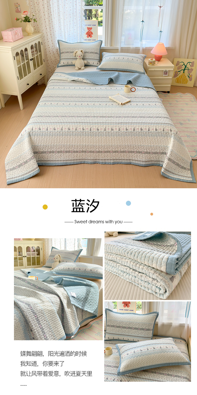 美优兰 2025新款双面全棉水洗床盖 蓝汐