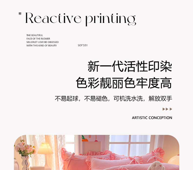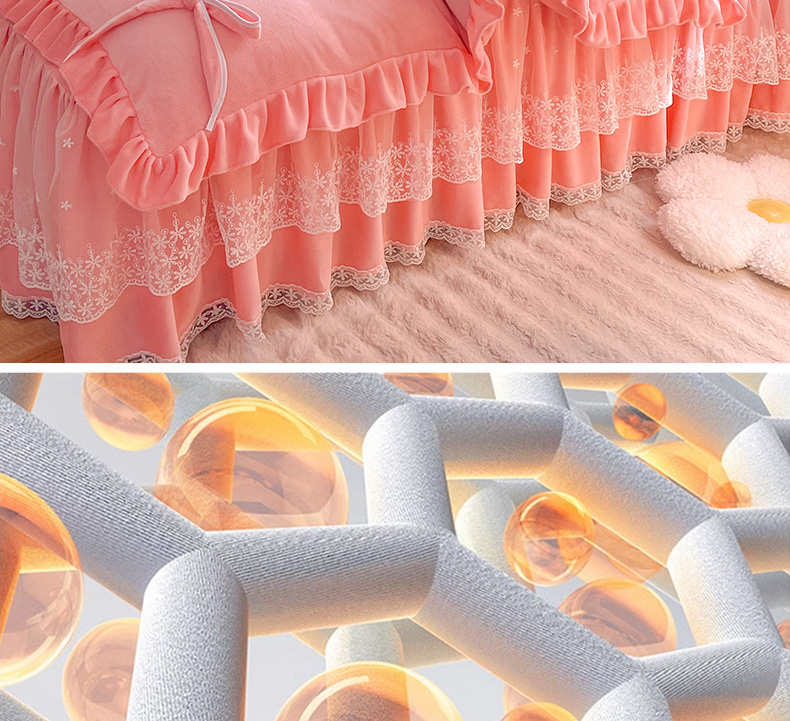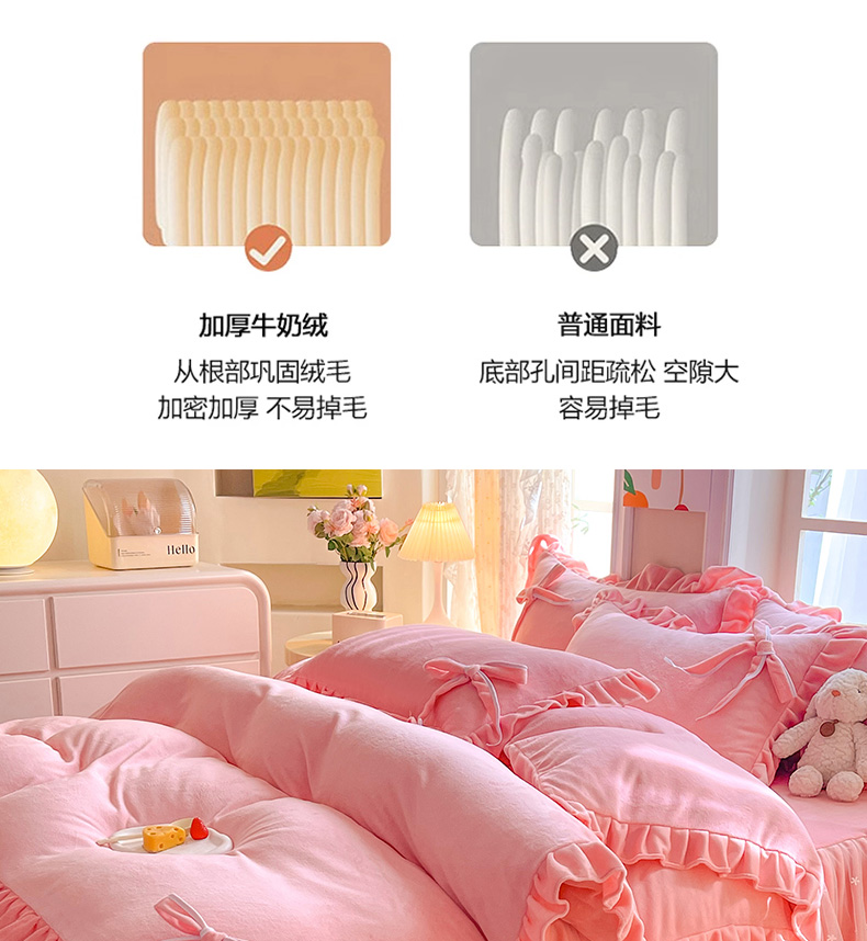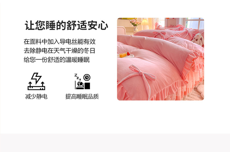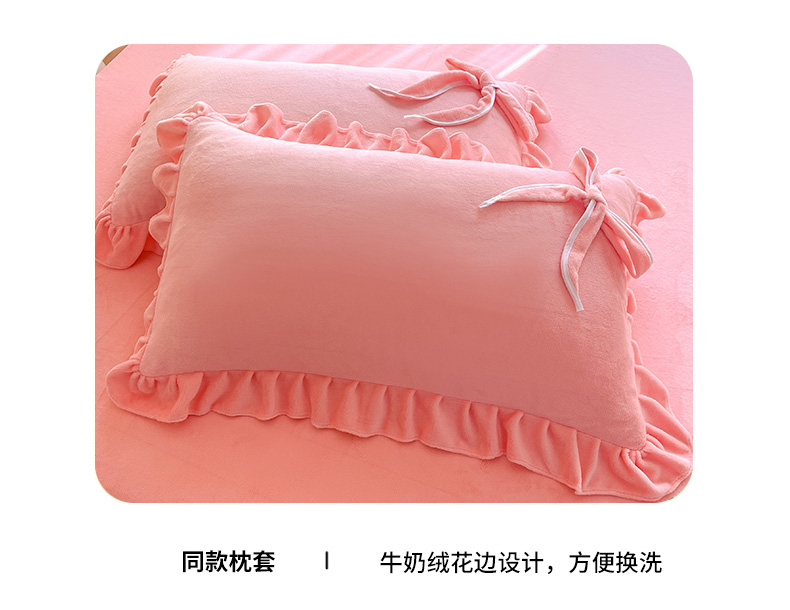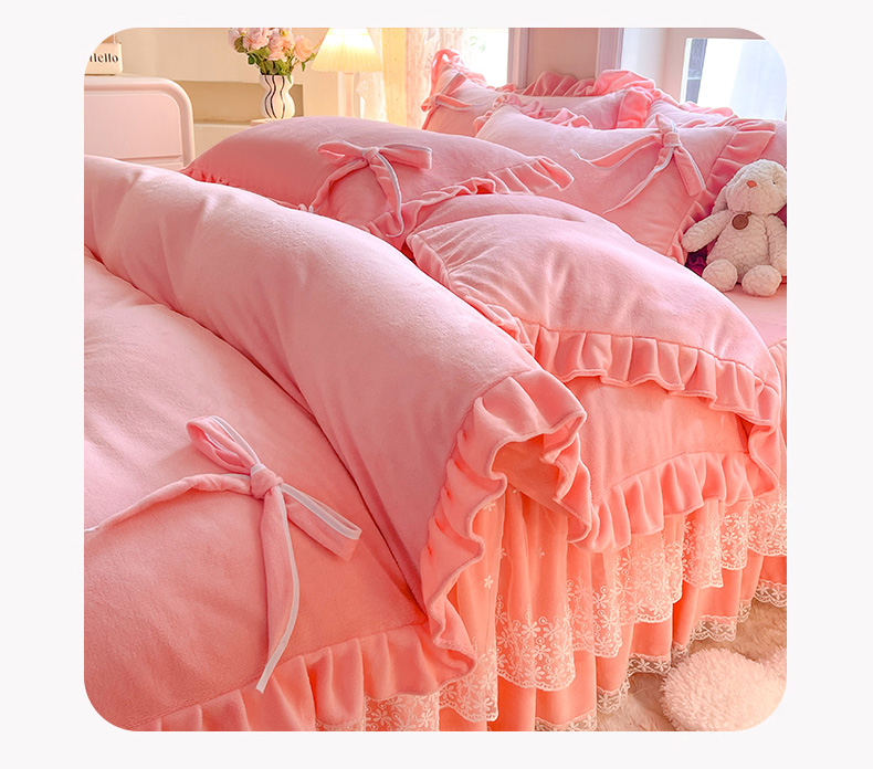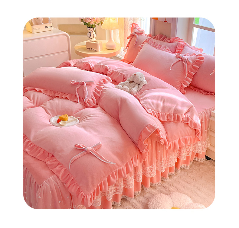 商品名称:后庭寝室 2025新款牛奶绒花边床裙四件套-浪漫花语系列 浪漫花语-暖粉玉