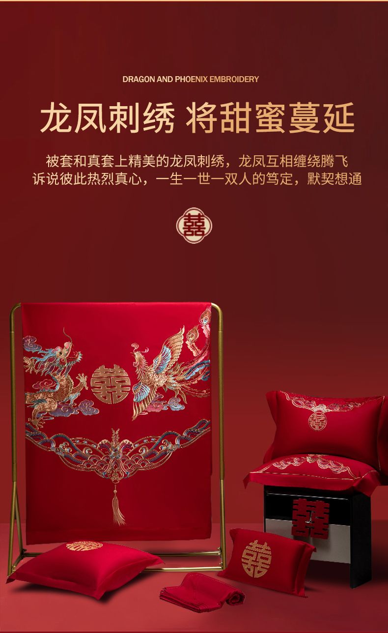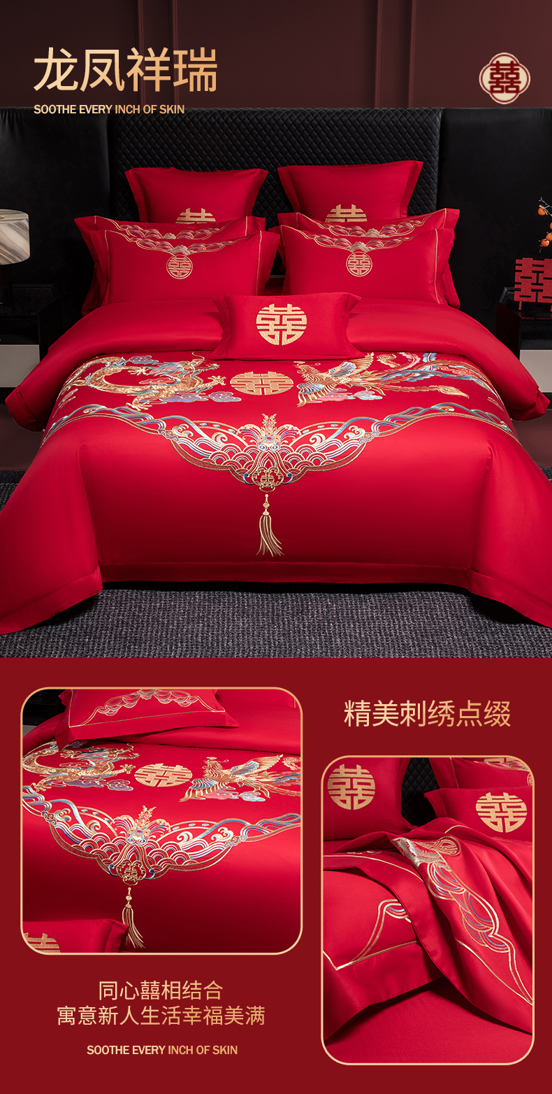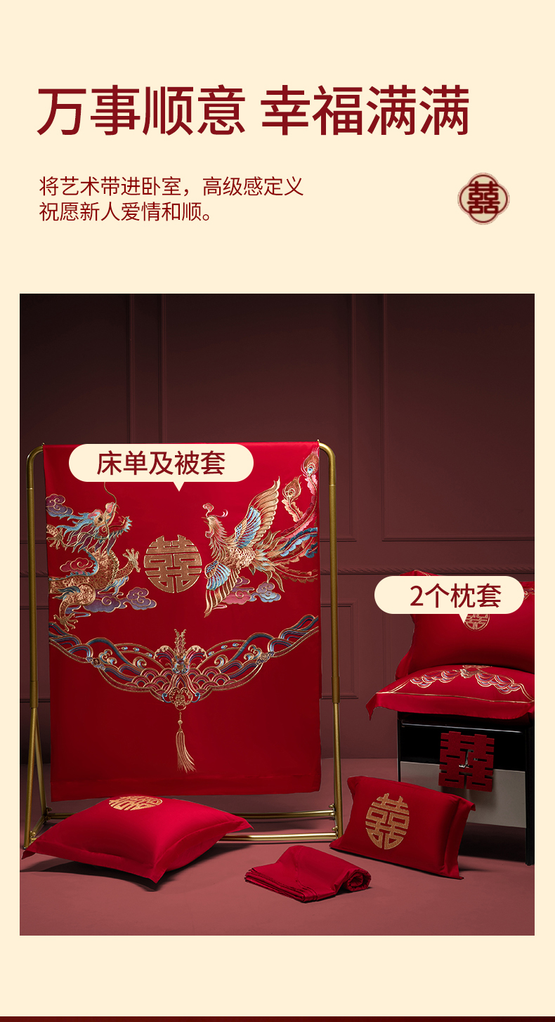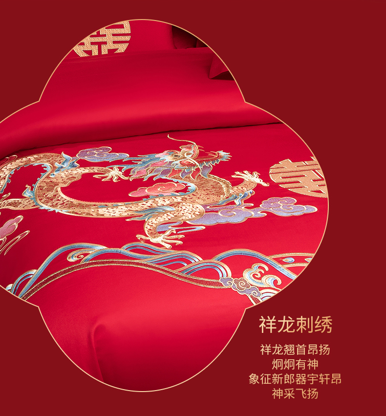 (总)欧乐蒂 2025冬季新品亲肤棉提花刺绣婚庆四件套,龙凤双喜,喜事花开