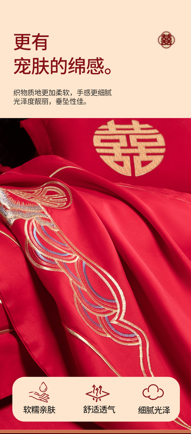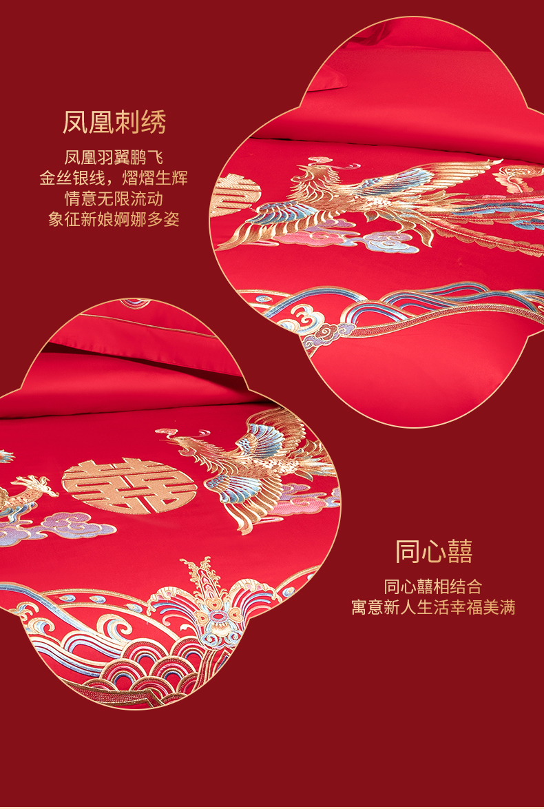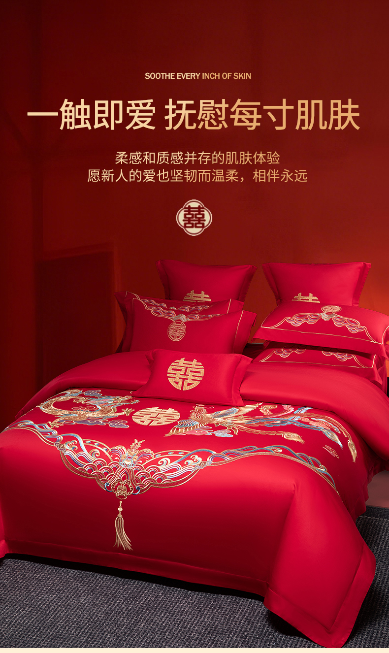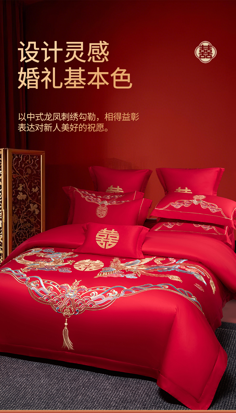 (总)欧乐蒂 2025冬季新品亲肤棉提花刺绣婚庆四件套,龙凤双喜,喜事花开