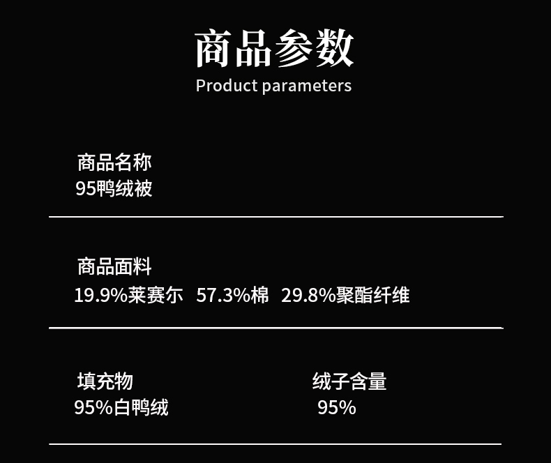95白鸭绒 220-240 填充900克 春秋被 | ¥1270.00 |