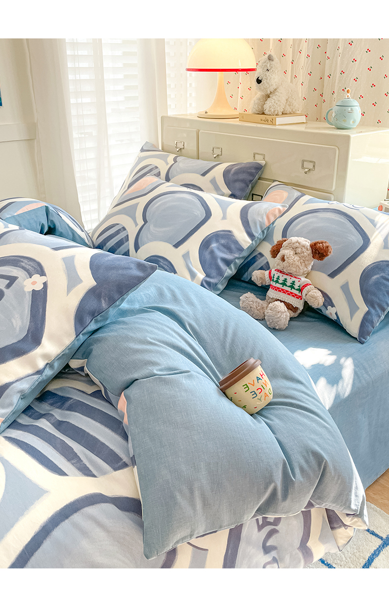澜妃 2025春夏新款12868全棉纯棉印花单被套 爱心兔-蓝