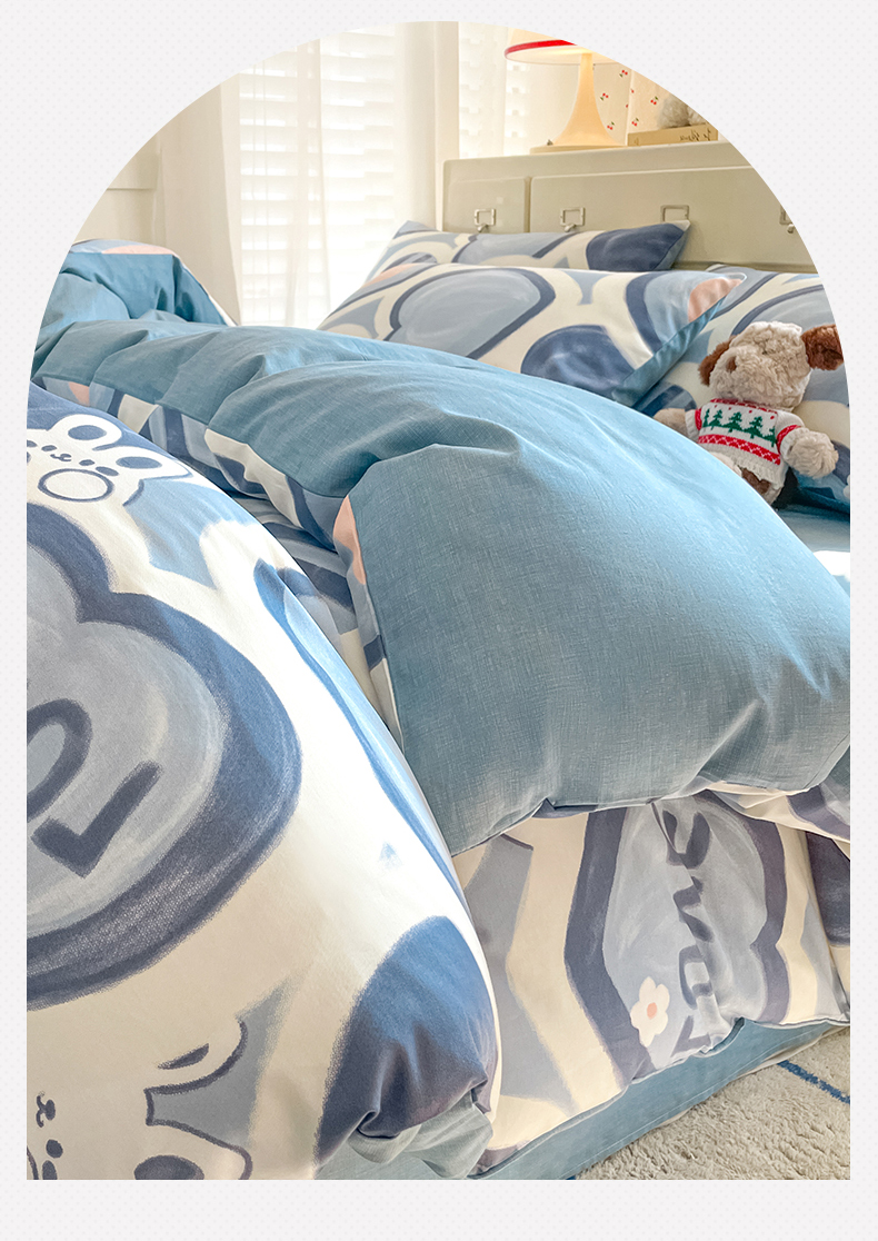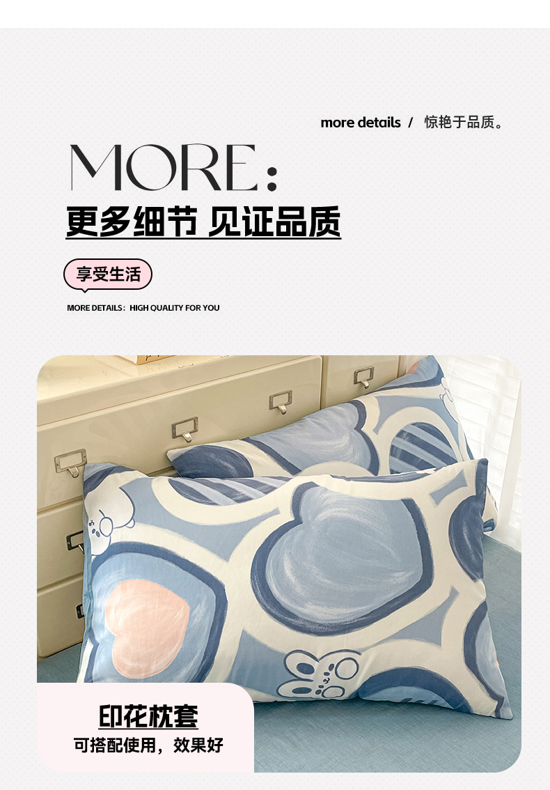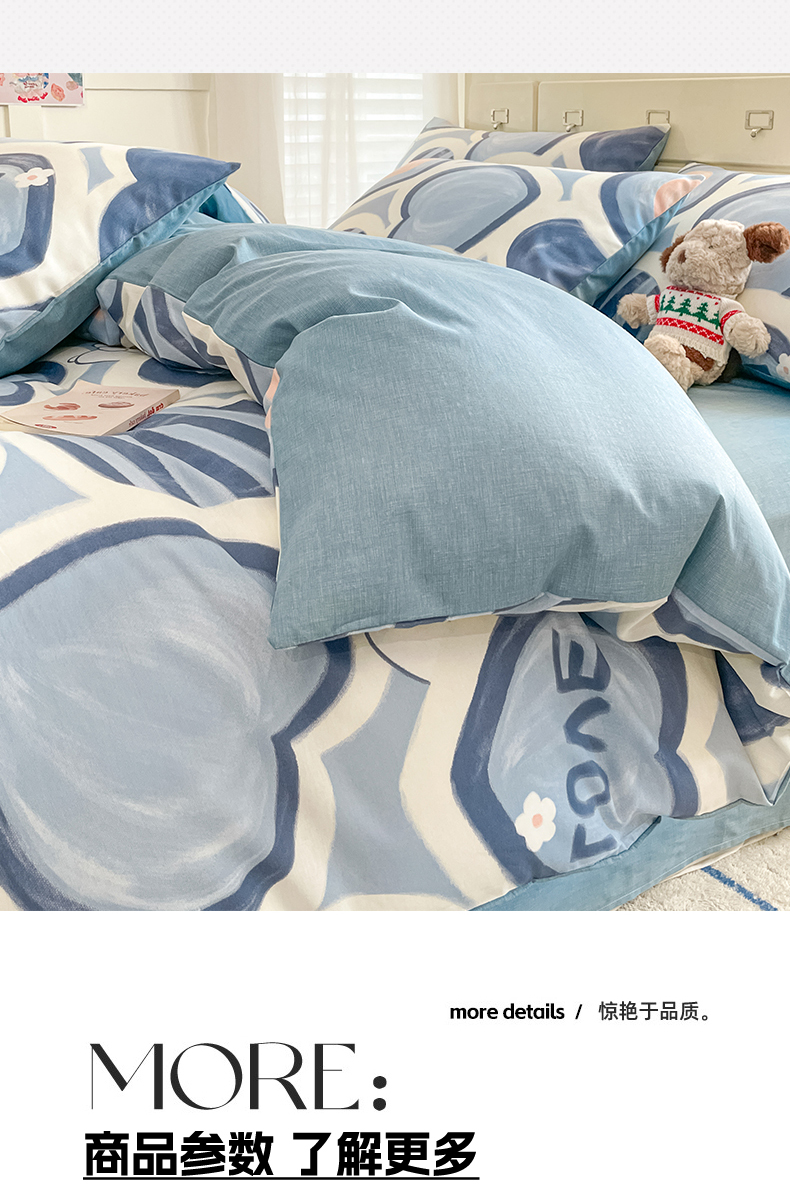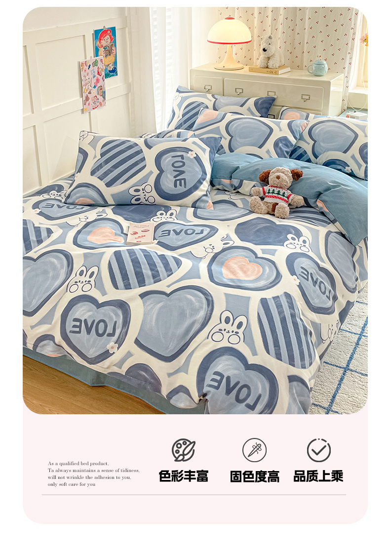 商品名称:澜妃 2025春夏新款12868全棉纯棉印花单被套 爱心兔-蓝