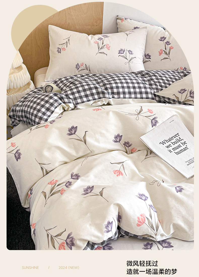 商品名称:澜妃 2025春夏新款12868全棉纯棉印花单被套 半夏清风-灰