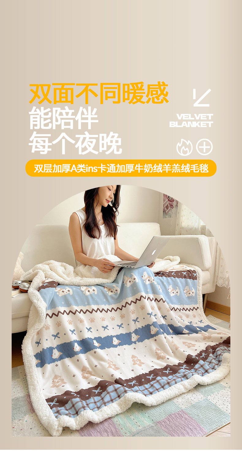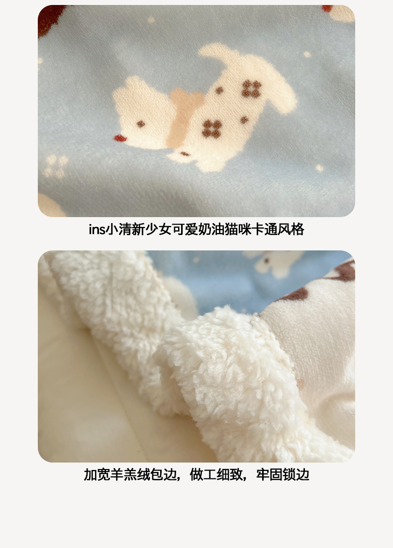 当前位置: 91家纺网 > 商品网购 > 床品套件 > 四件套 > 葡萄家 2025新款A类ins小清新少女可爱奶油猫咪卡通加厚牛奶绒羊羔绒多功能毛毯毯子 绒毛毯-MT波西狗狗