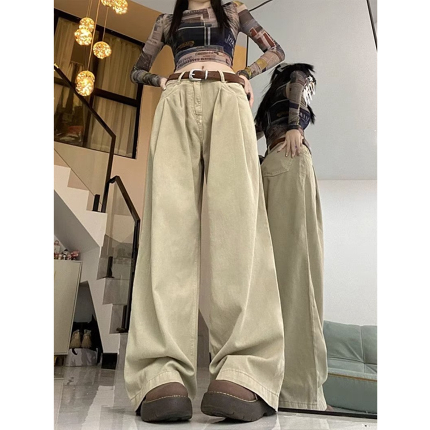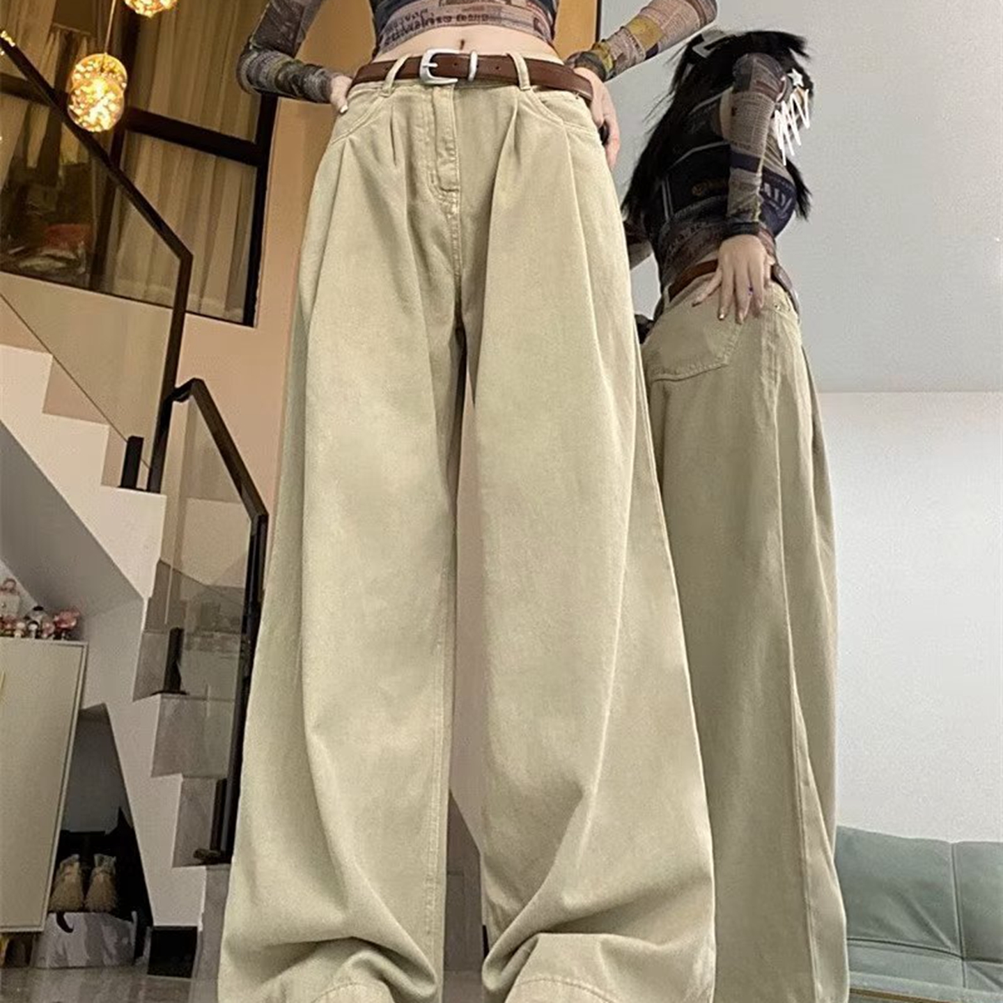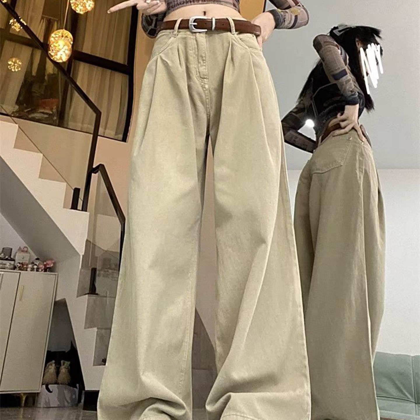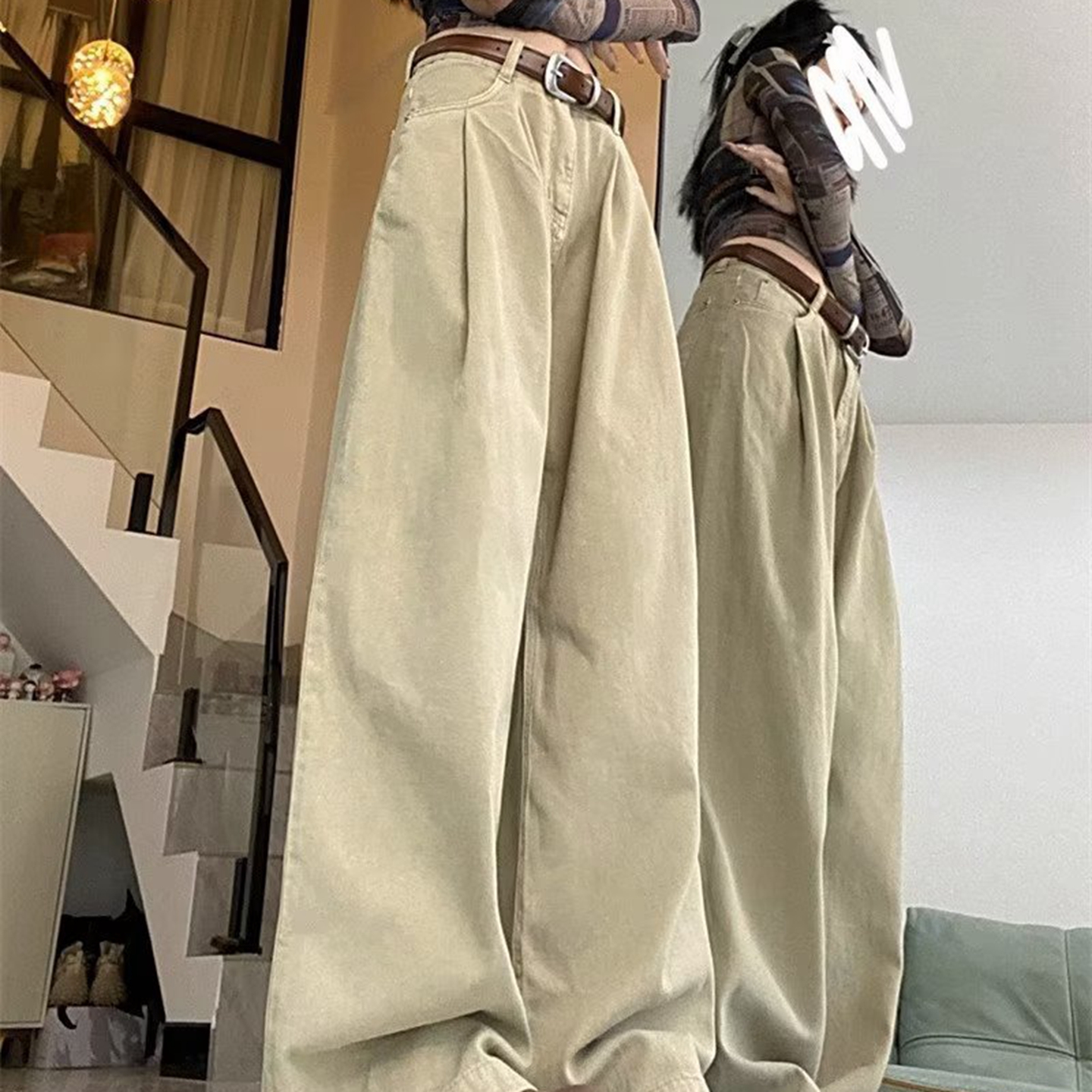 洛兰沙家居馆【只代发】【只代发】 2025新款白色垂感直筒休闲裤女秋季2023新款美式工装裤宽松阔腿裤拖地牛仔裤6 白色