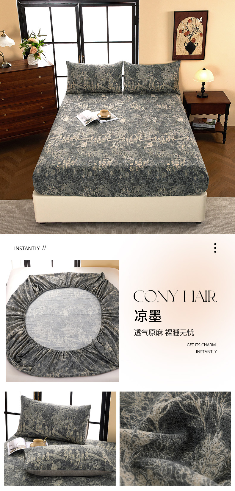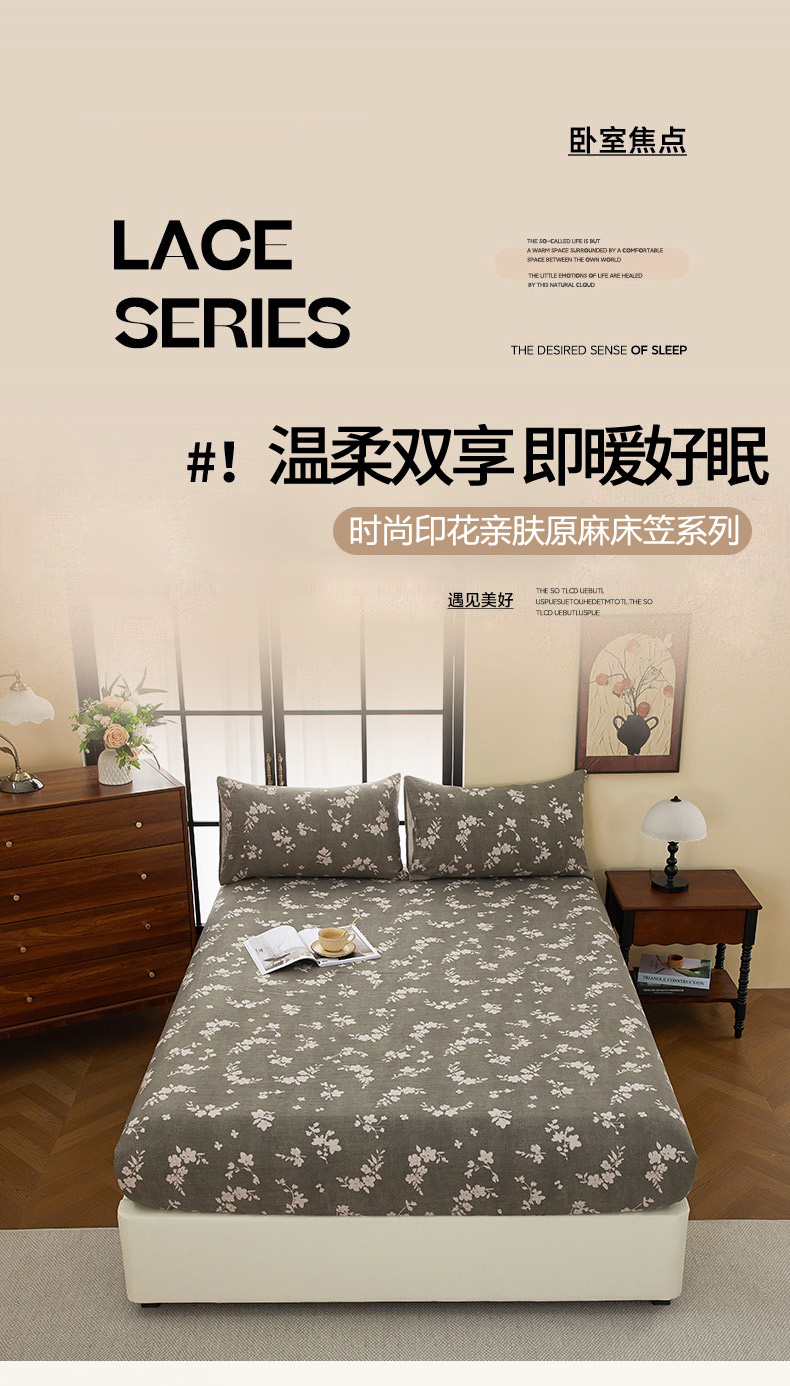 • 91家纺网 家纺一手货源 找家纺 卢赛尔 2025新款高克重皱皱复古原麻单床笠床笠三件套 森屿