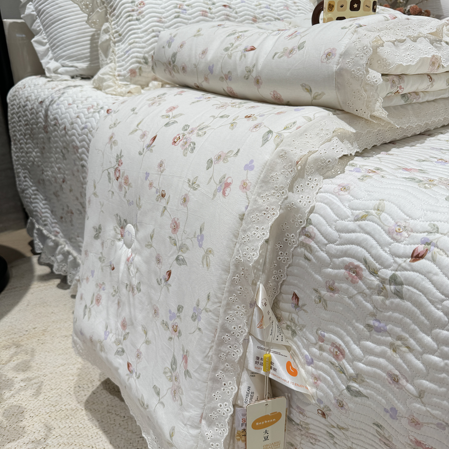 奈萝家纺 2025新款全棉蕾丝花边被套春秋被床盖四件套床盖三件套 沫婉