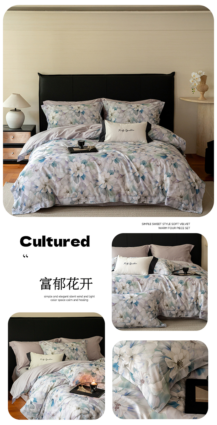 黛舒家居 2025新款天丝棉磨毛花卉四件套 富郁花开