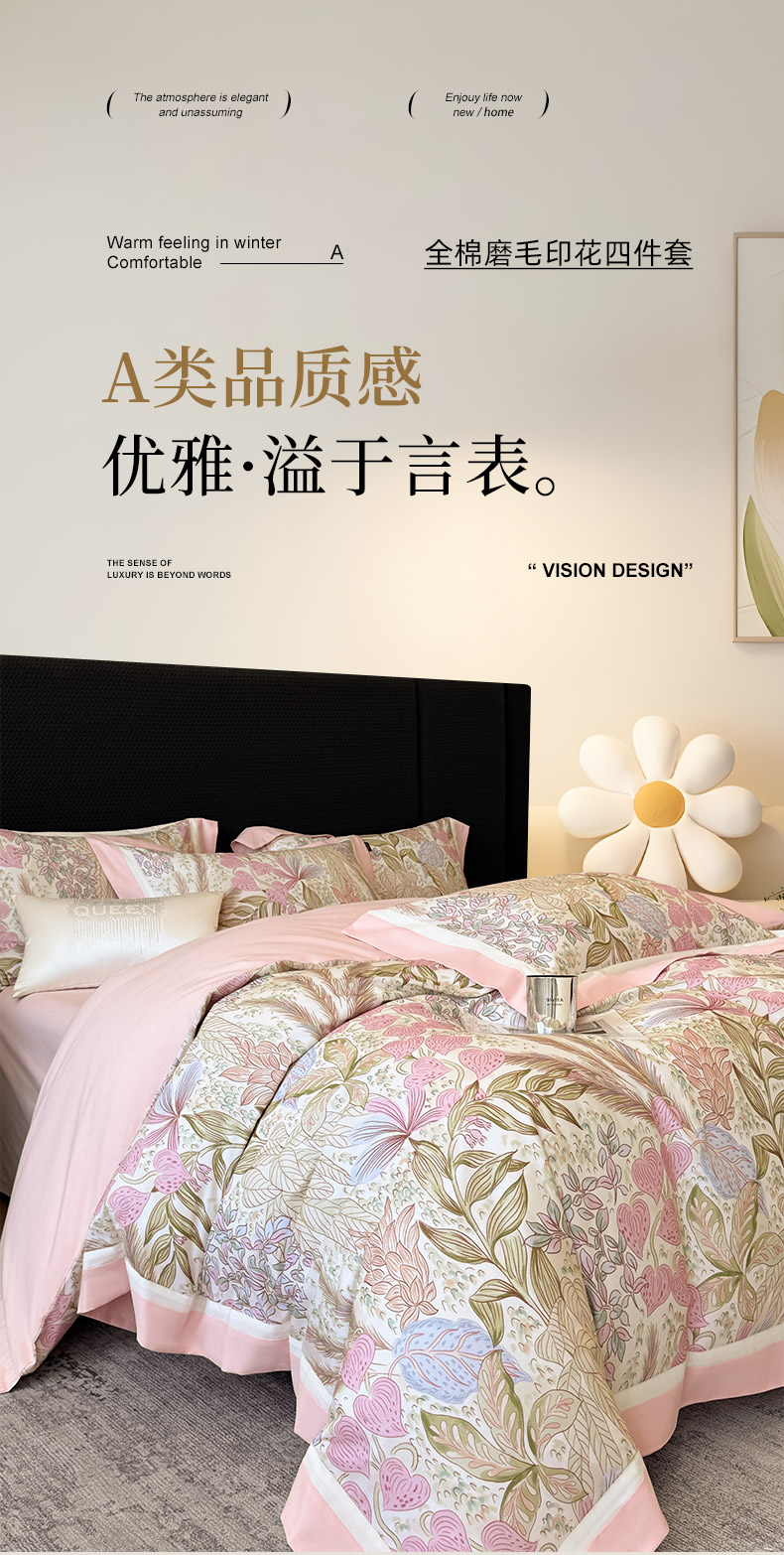 (总) 2025直播爆款A类加厚保暖全棉磨毛四件套纯棉数码印花被套高端床单床笠款裸睡床上用品