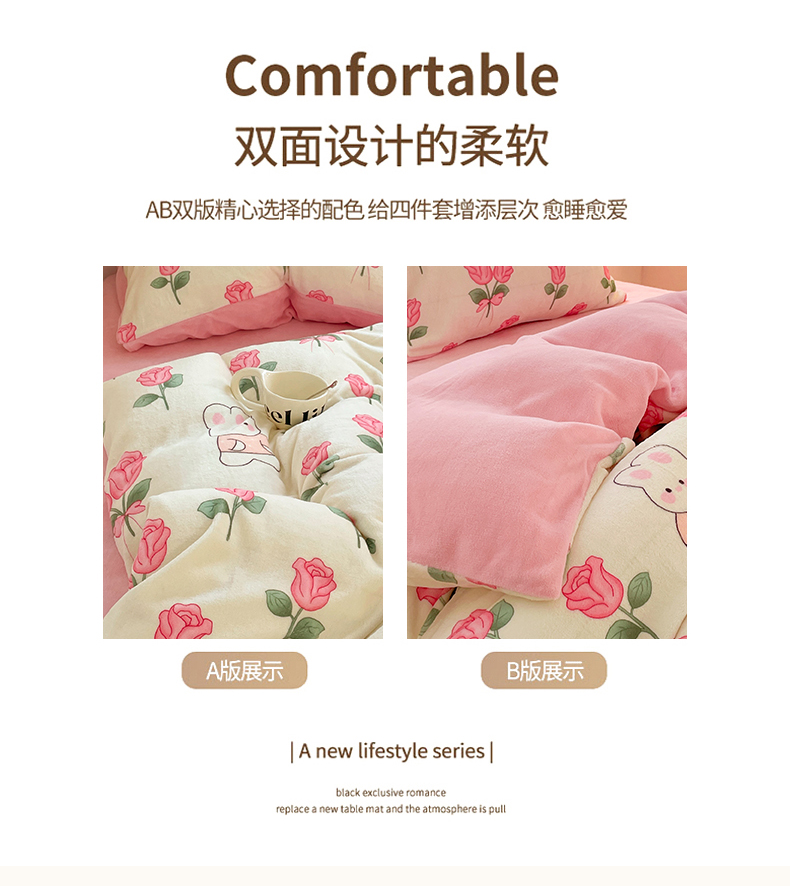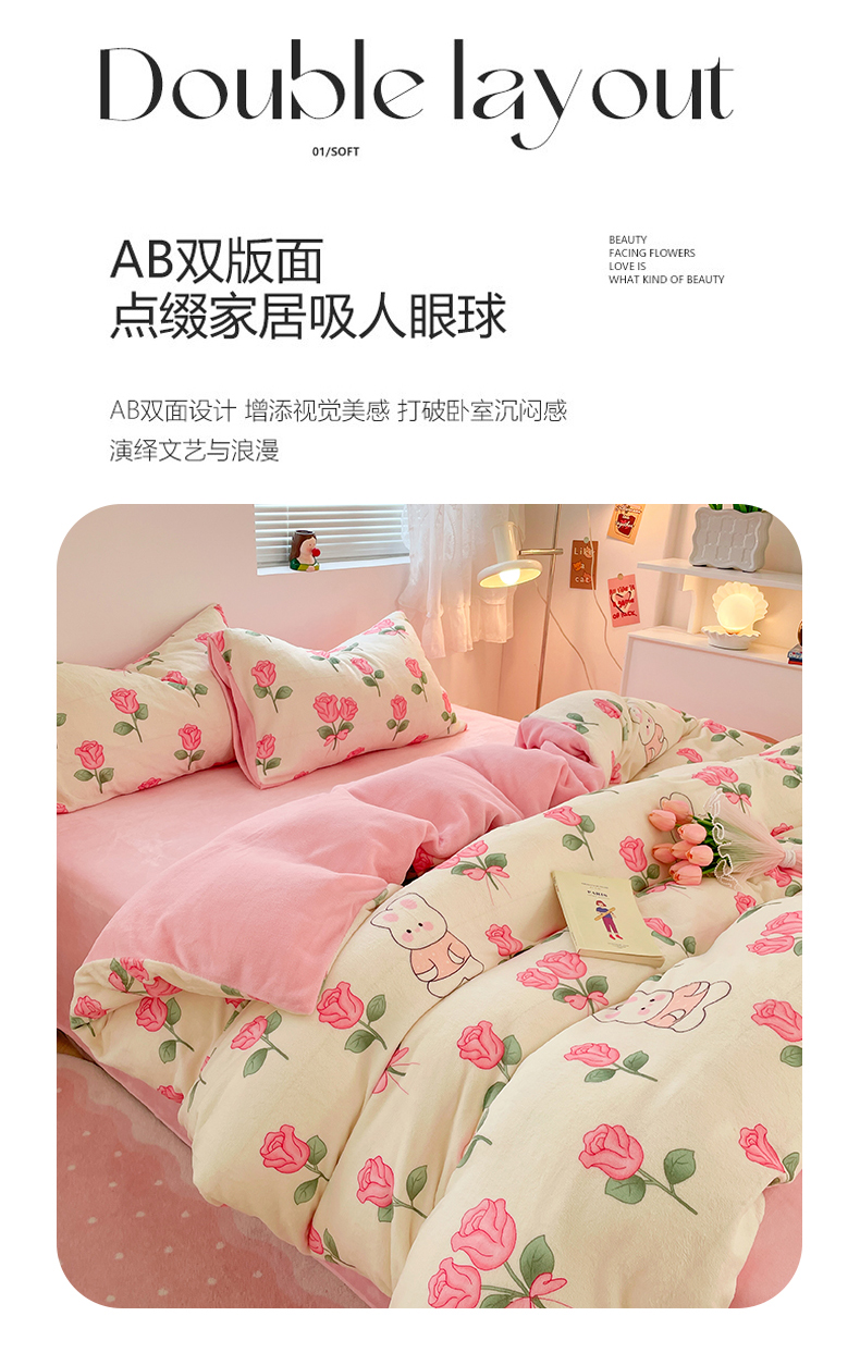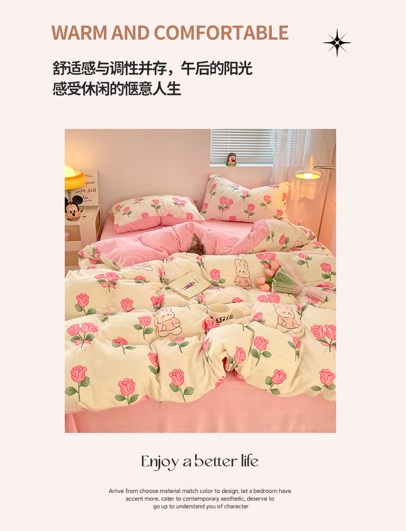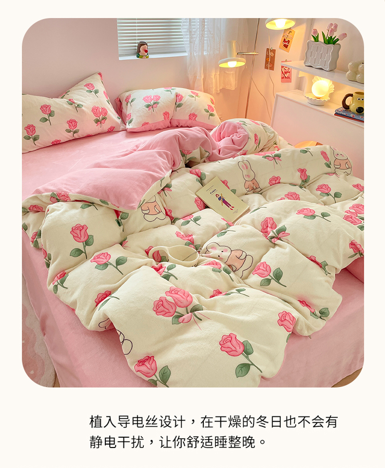 当前位置: 91家纺网 > 商品网购 > 床品套件 > 四件套 > 牛奶绒四件套 > 卡斯诺家纺馆 2025新款200克牛奶绒四件套 浪漫玫瑰