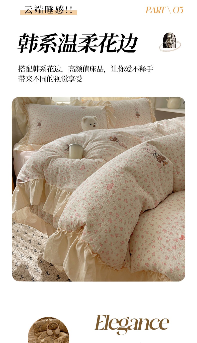 当前位置: 91家纺网 > 商品网购 > 床品套件 > 四件套 > 其它四件套 > 初念 2025新款法式花边款小碎花云感双层纱系列四件套-曼塔(小红书推荐)提供买家秀 曼塔-芊芊花海