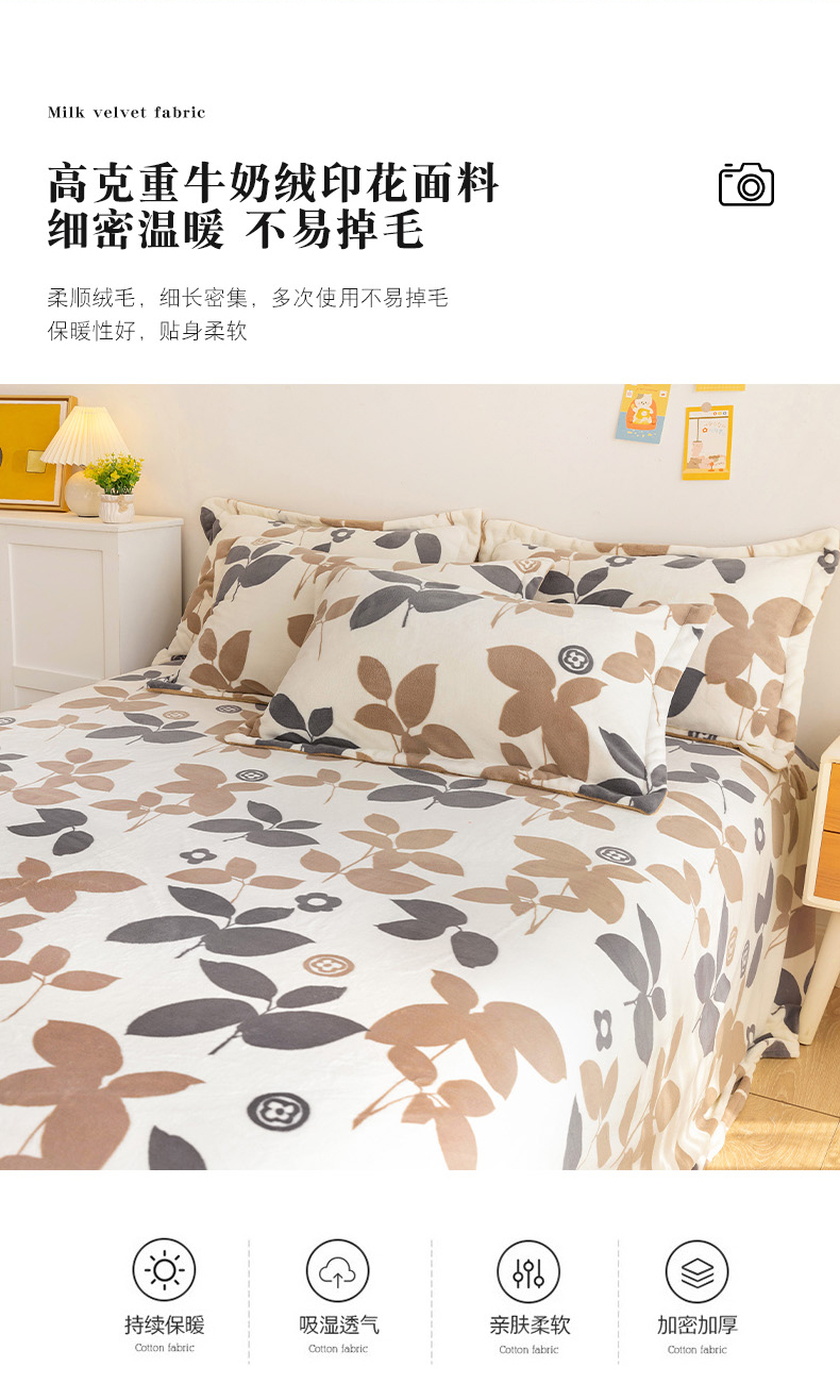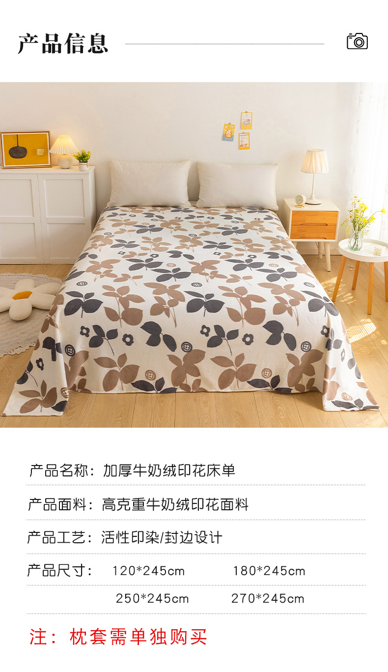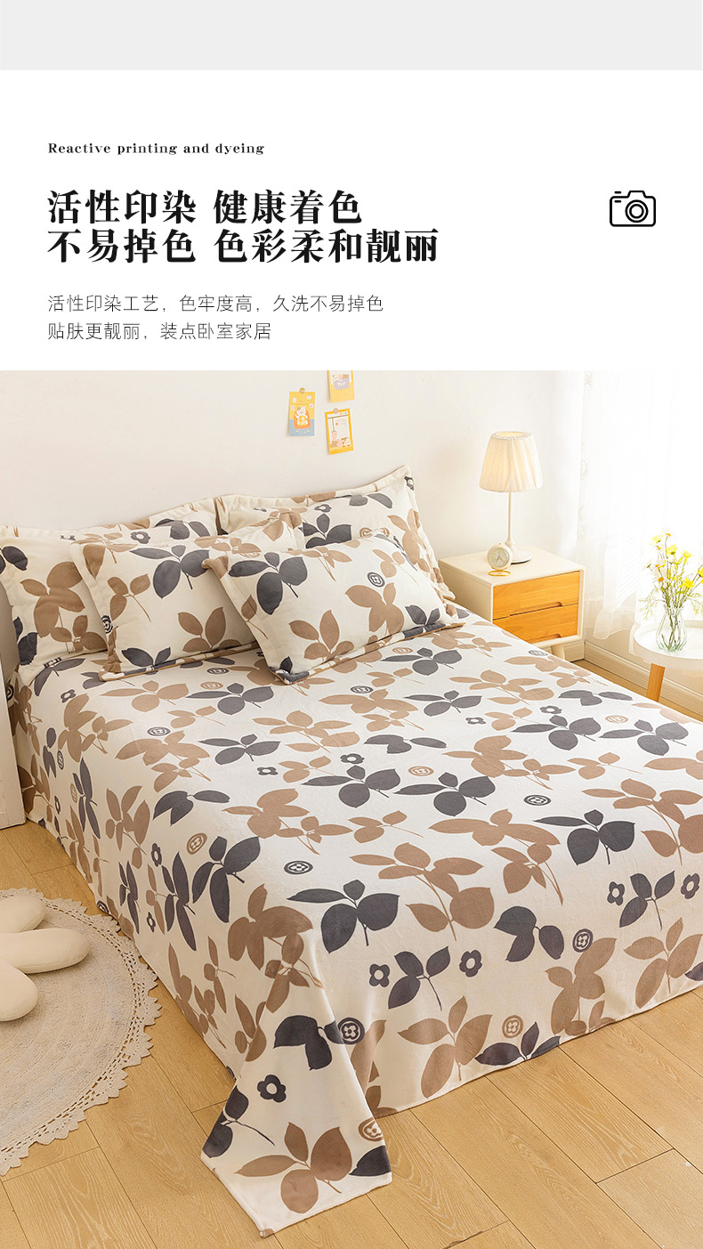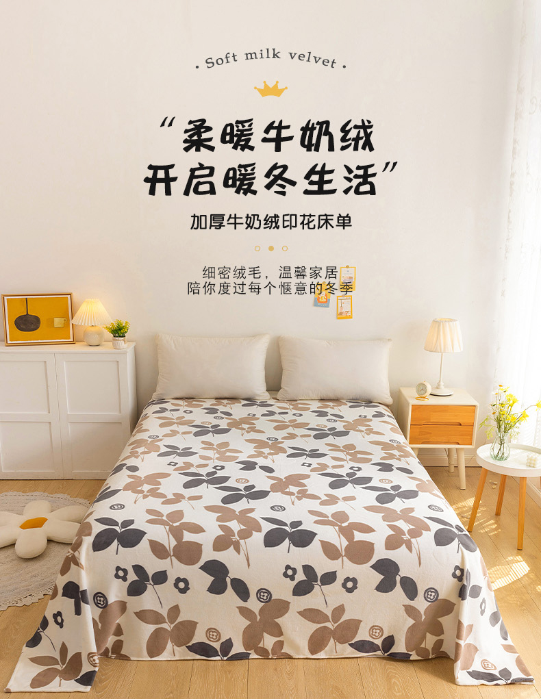 商品名称:金盛纺 2025新款高克重牛奶绒印花系列单床单(可定制) 落叶