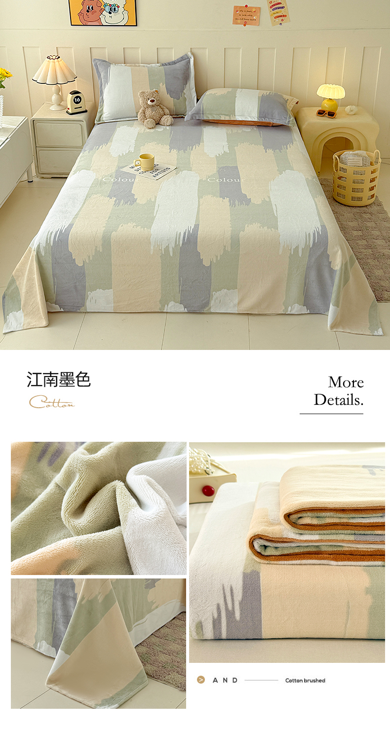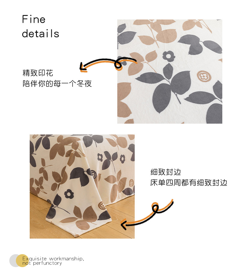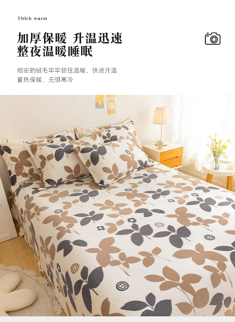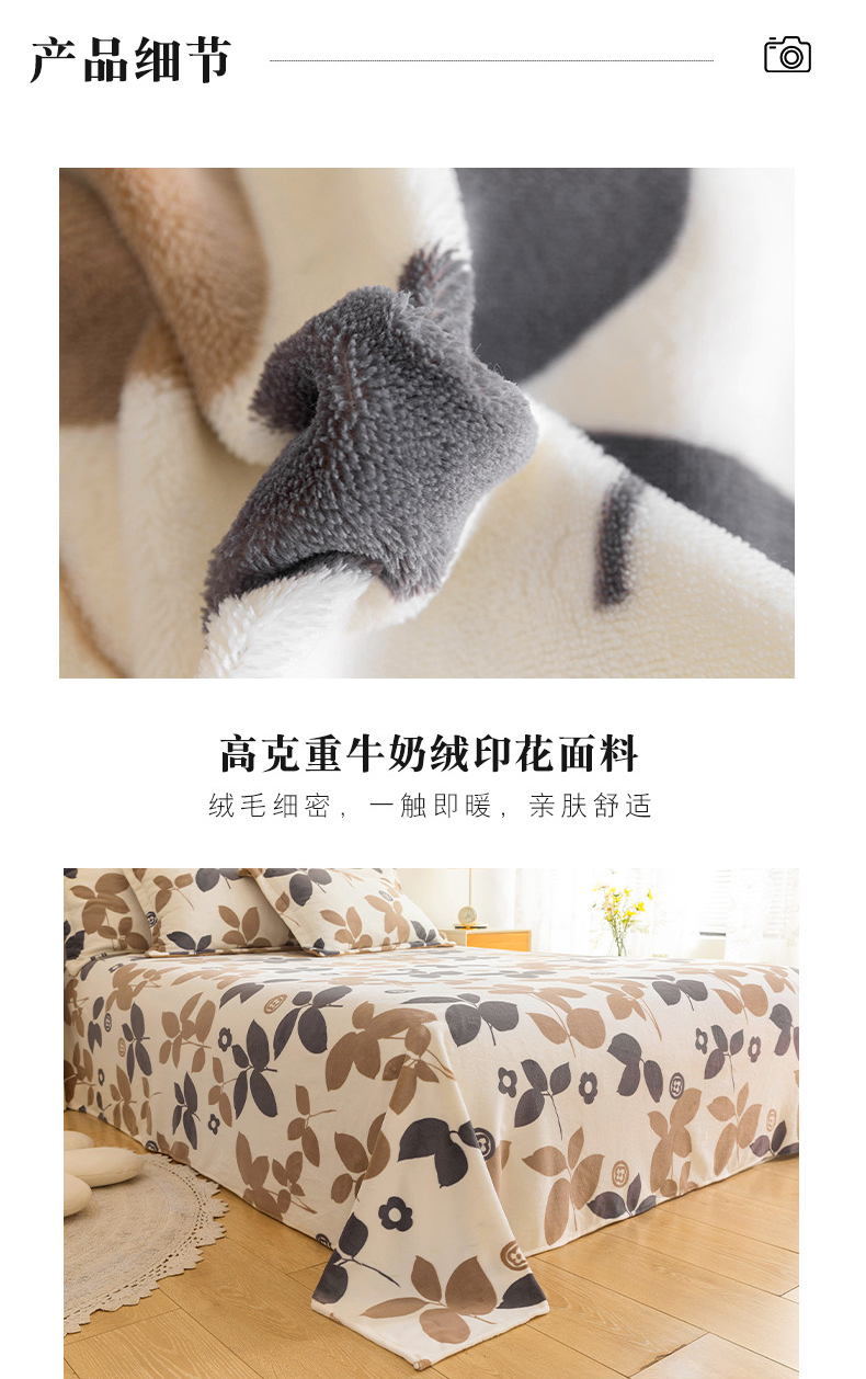 商品名称:金盛纺 2025新款高克重牛奶绒印花系列单床单(可定制) 落叶