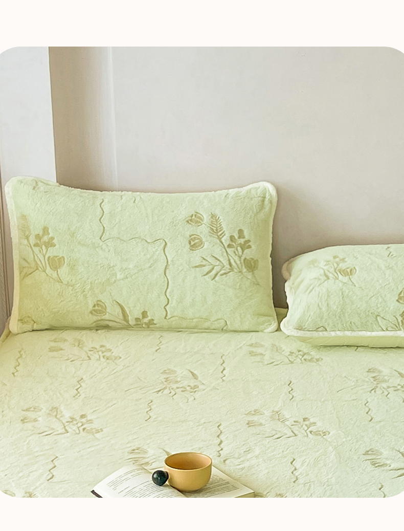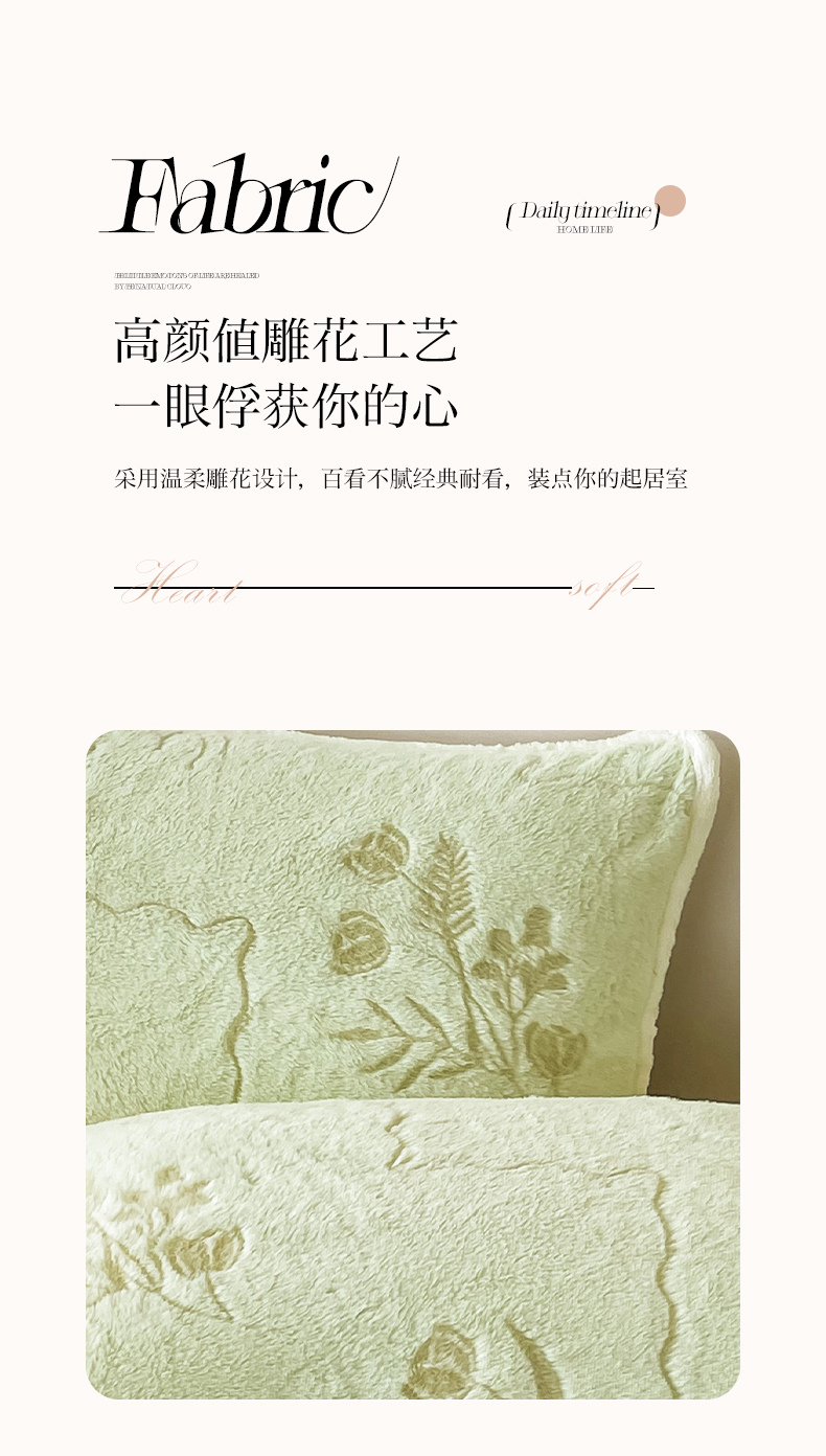 商品名称:眠势力 2025新款兔毛绒雕花枕套冬季兔兔绒加绒枕头套-拉链款 繁花-绒绿