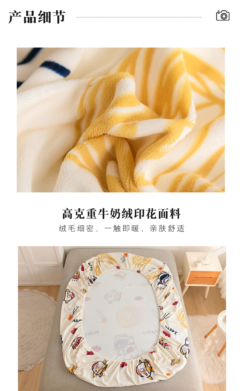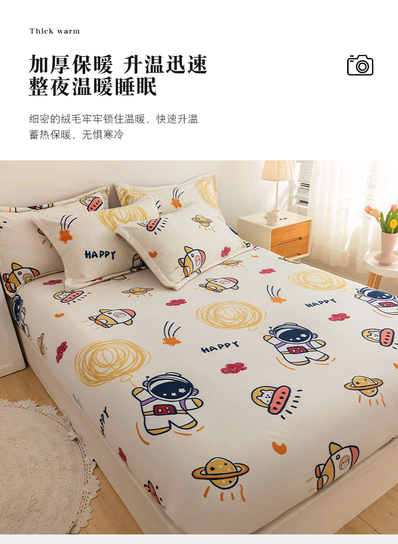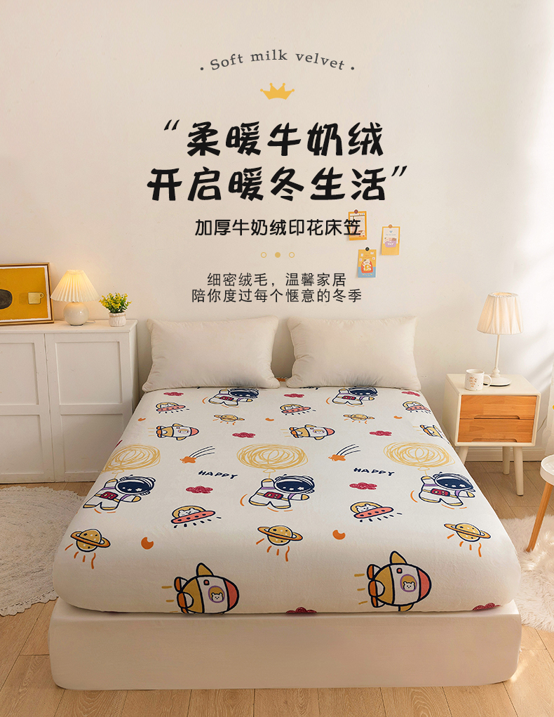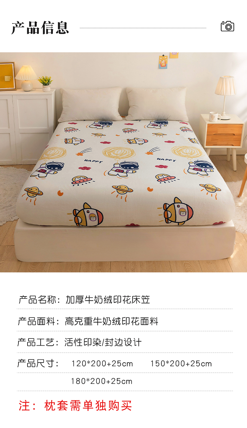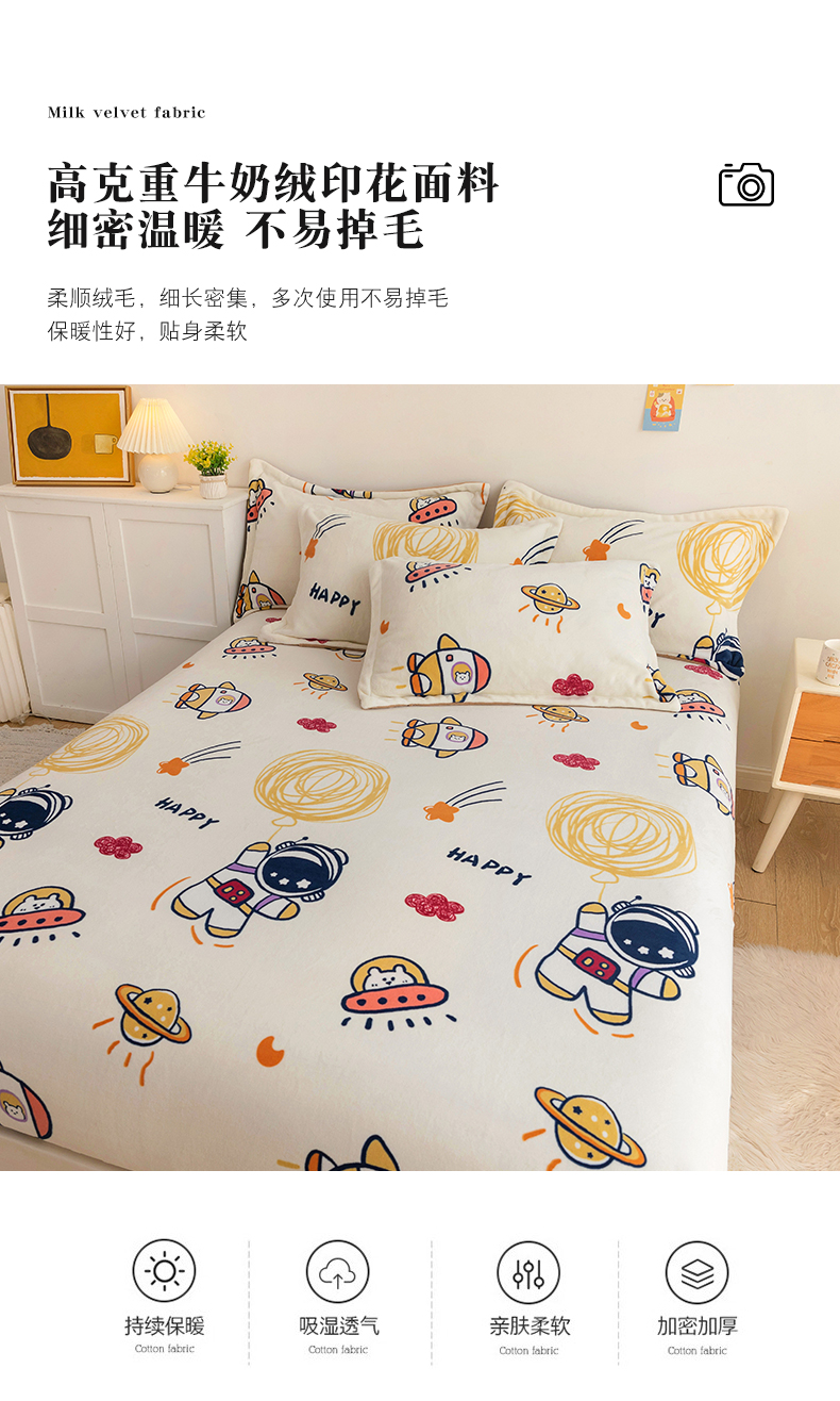商品名称:金盛纺 2025新款高克重牛奶绒印花系列单床笠(可定制) 宇航员
