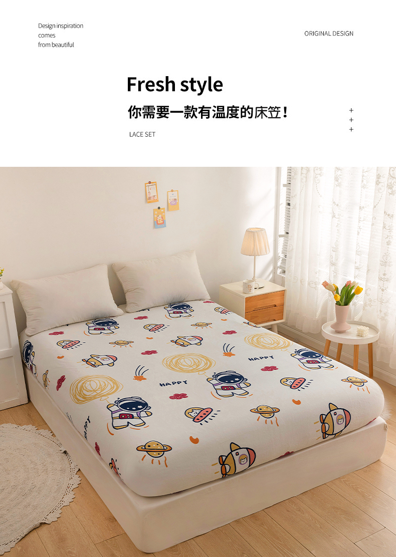金盛纺 2025新款高克重牛奶绒印花系列单床笠(可定制) 宇航员
