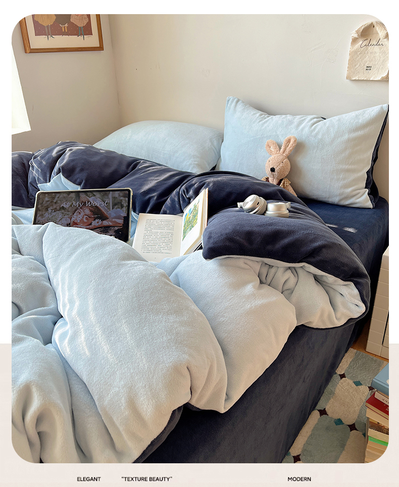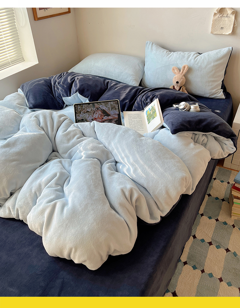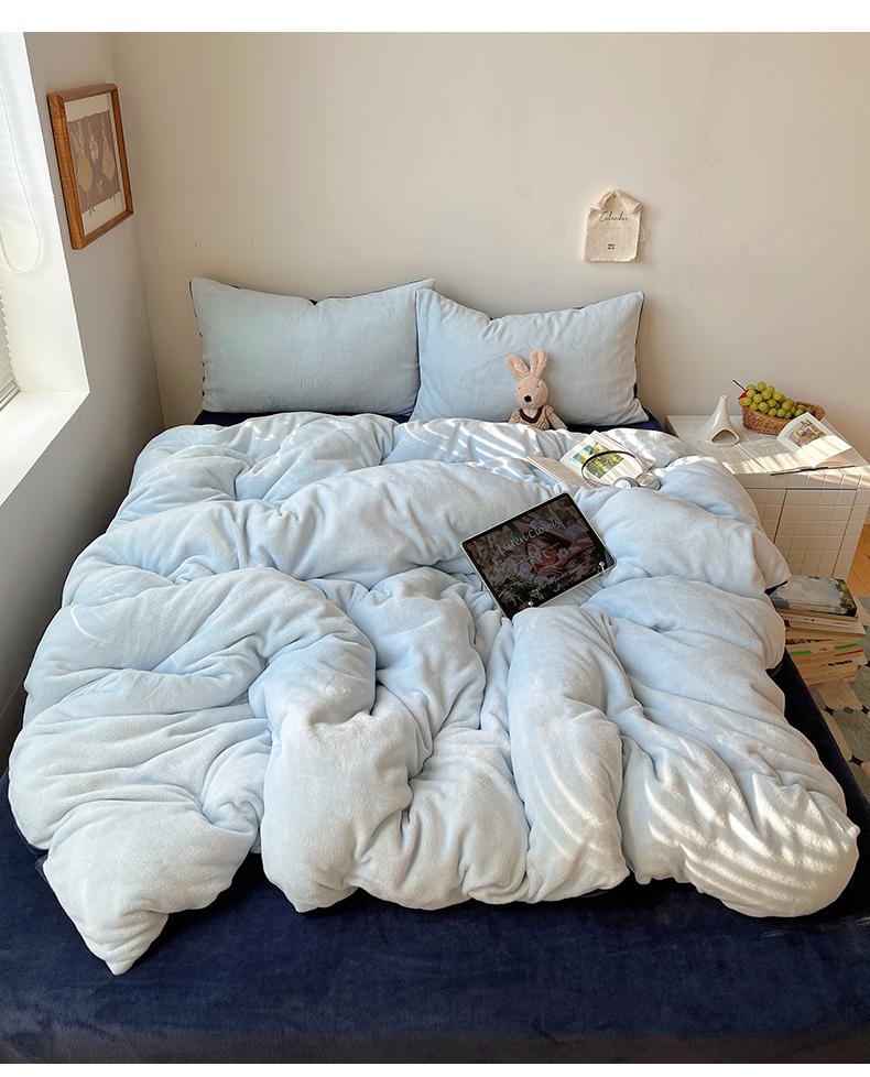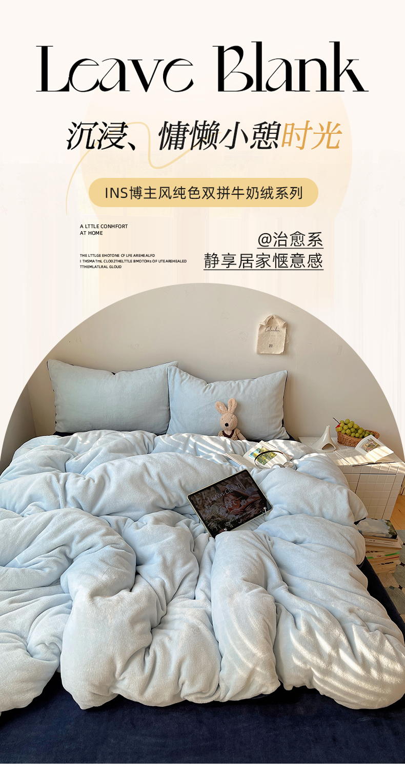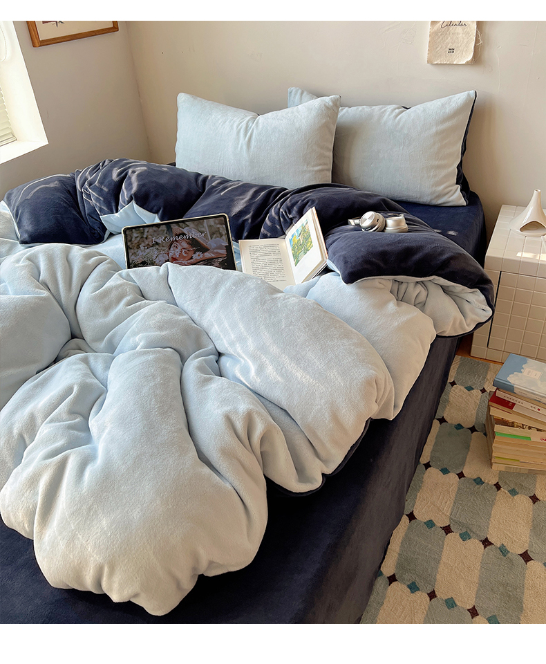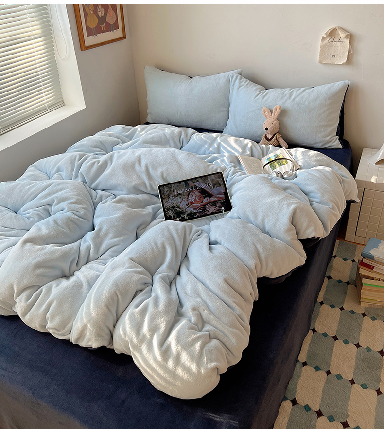 当前位置: 91家纺网 > 商品网购 > 床品套件 > 四件套 > 牛奶绒四件套 > 六巷胡同 2025新款INS博主风纯色双拼A类牛奶绒四件套 蓝莓美式