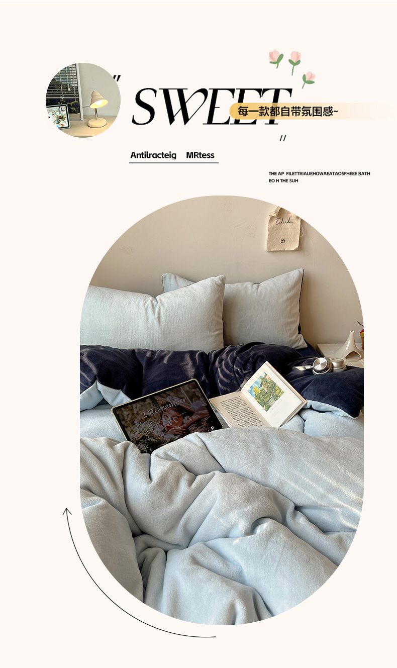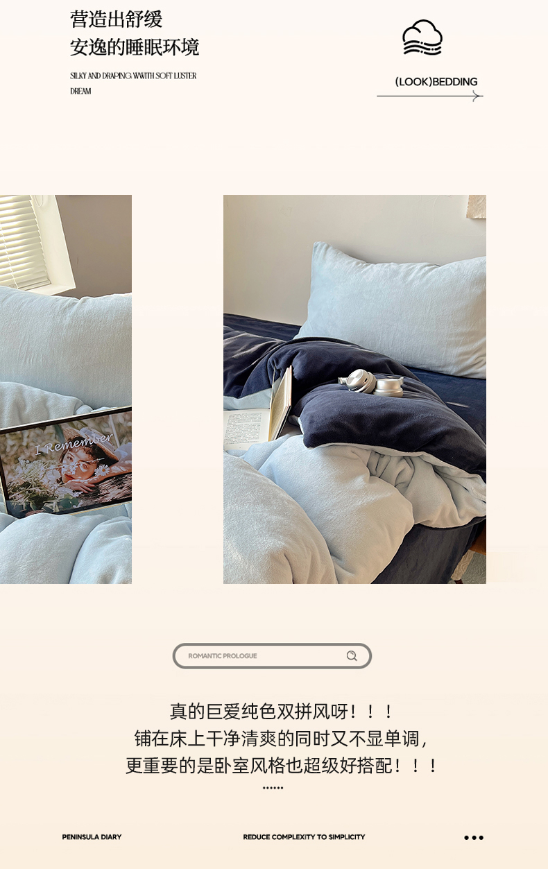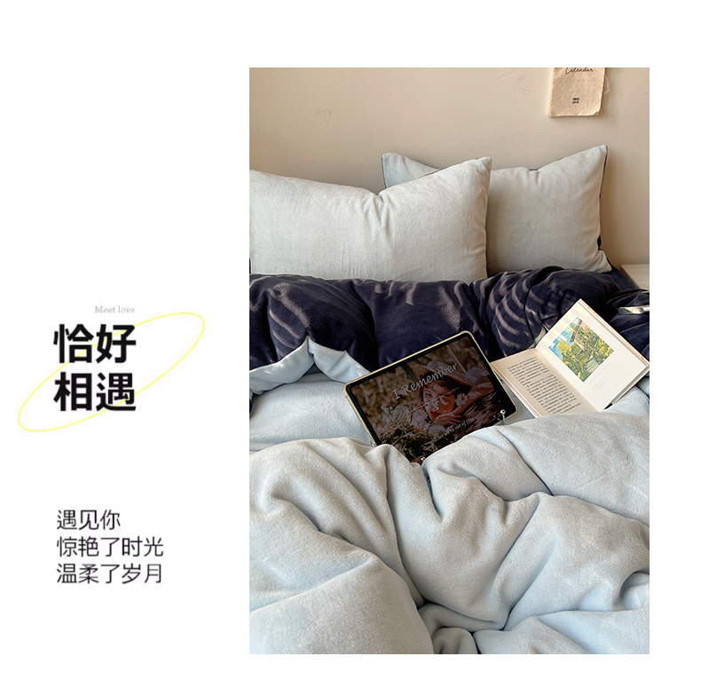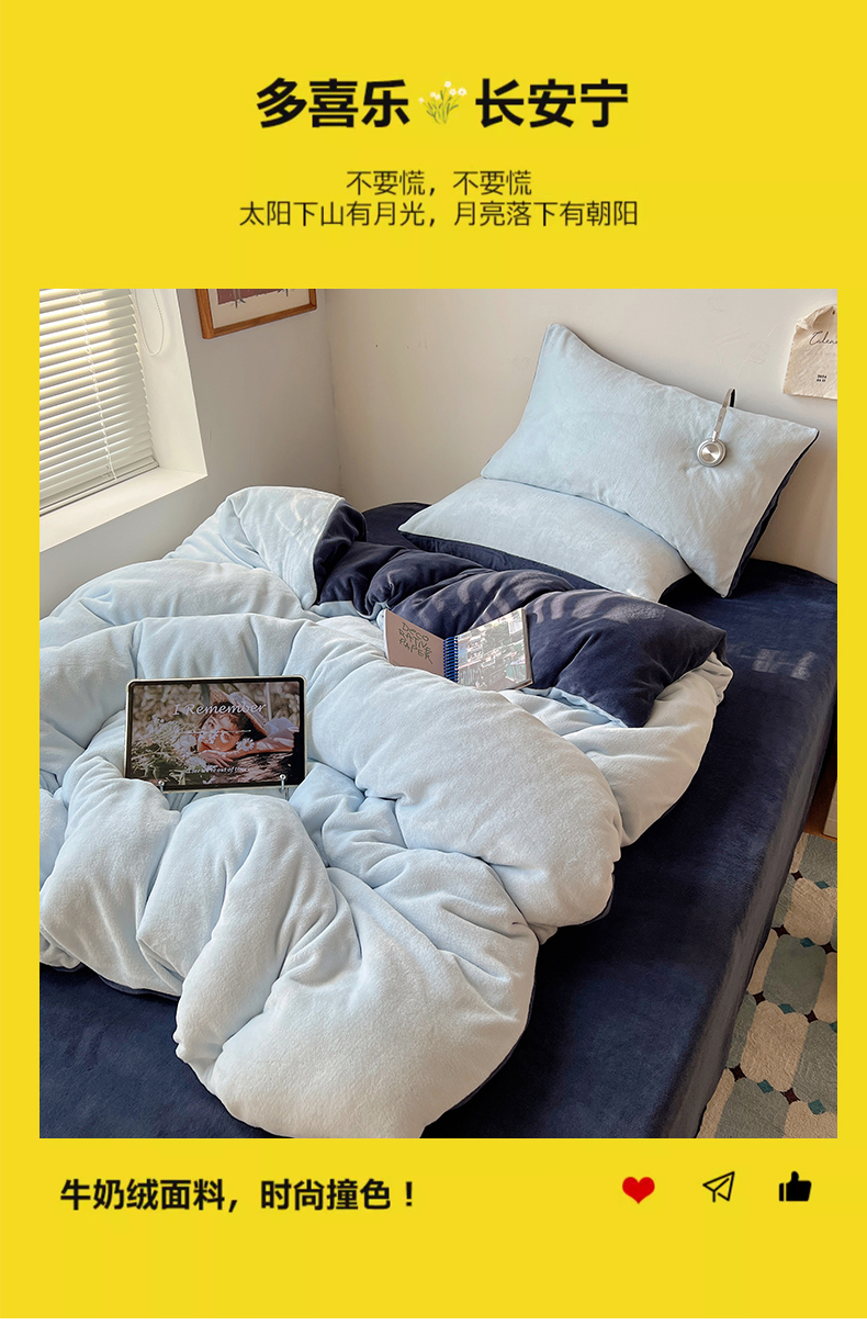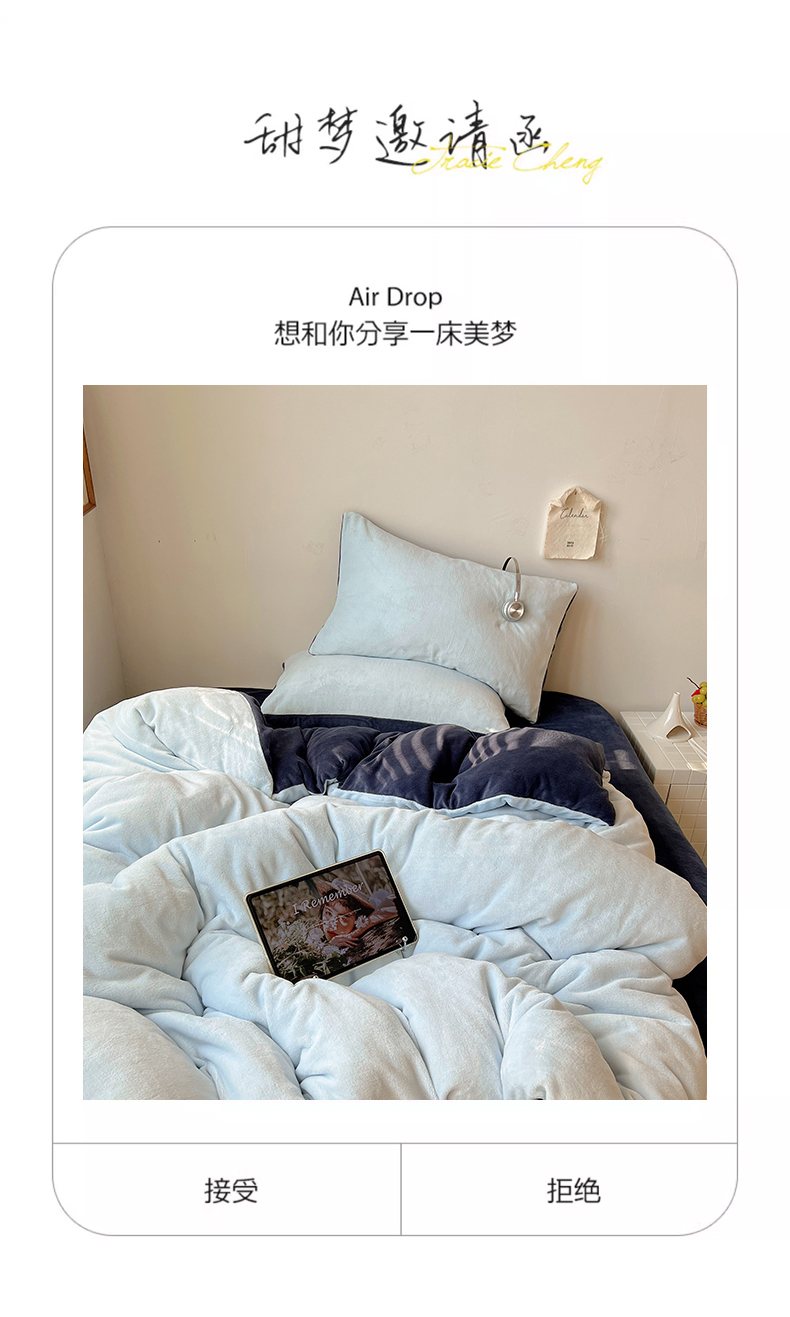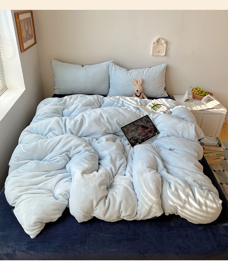 当前位置: 91家纺网 > 商品网购 > 床品套件 > 四件套 > 牛奶绒四件套 > 六巷胡同 2025新款INS博主风纯色双拼A类牛奶绒四件套 蓝莓美式