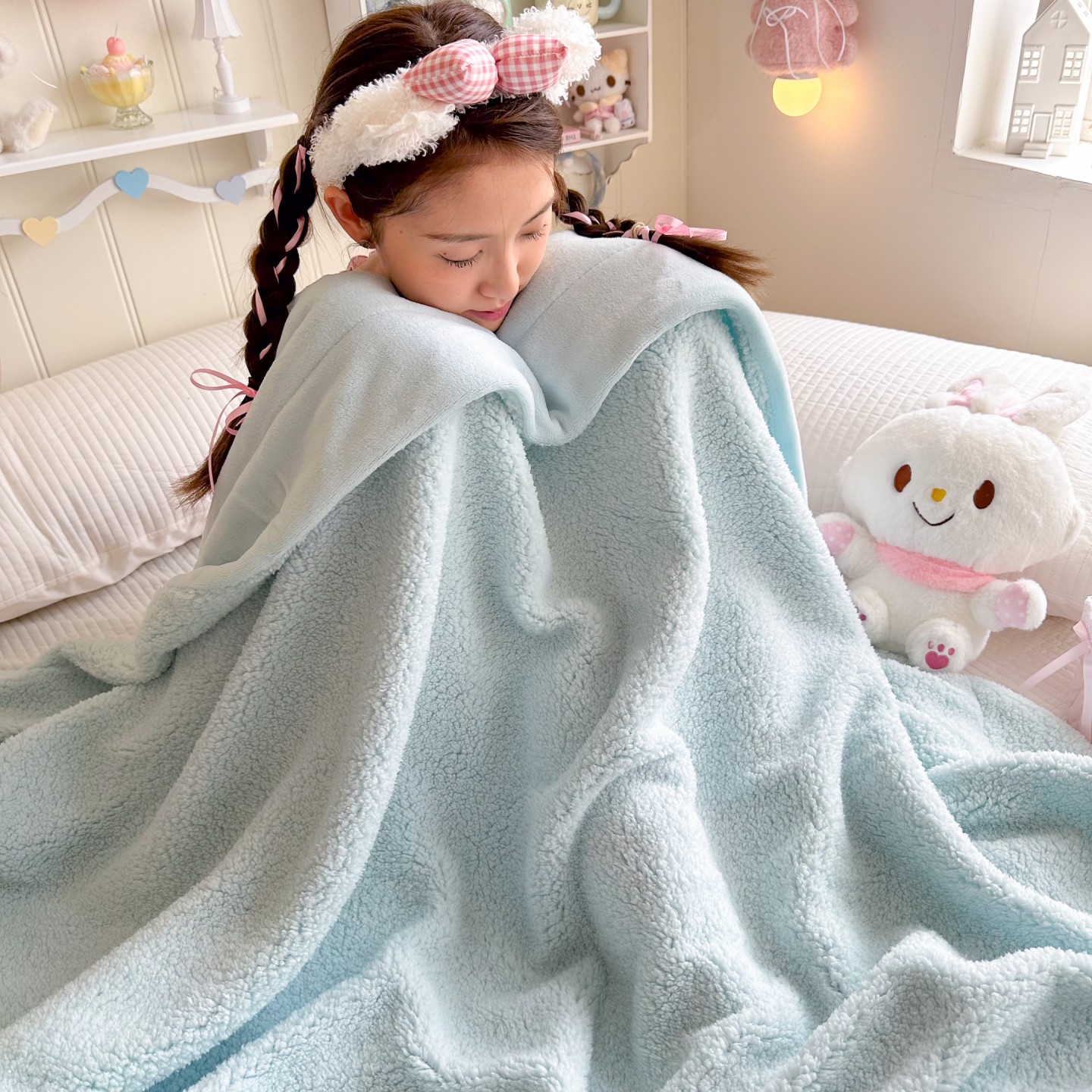 (总)顾里家纺 2024新款ins韩系牛奶羊羔绒套件,羊羔粉黄,羊羔白蓝,羊羔黄蓝,羊羔灰,羊羔咖,羊羔蓝,羊羔蓝黄,羊羔绿粉,羊羔米,羊羔奶黄,羊羔暖咖,羊羔紫