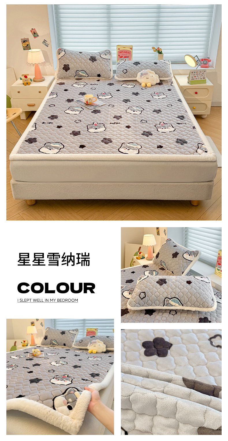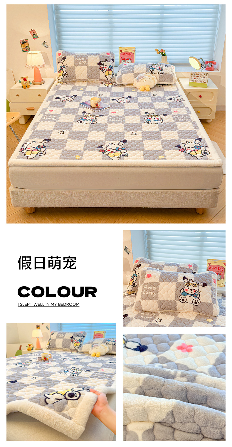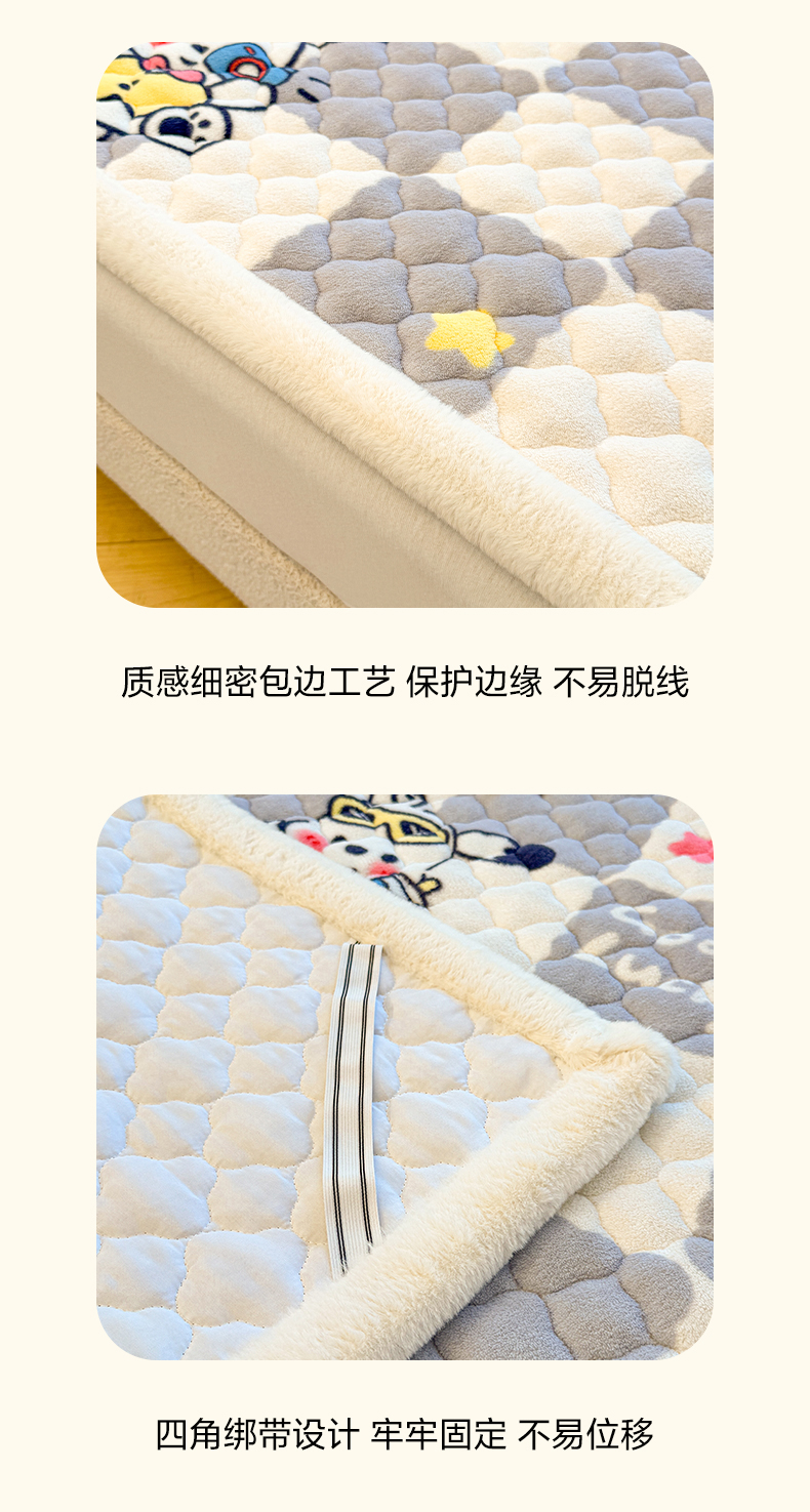 (总)喜居 2025新款A类水晶边牛奶绒夹棉床褥垫,嘟嘟狗,安睡熊,彩虹郁金香,草莓小兔,调皮点点,粉粉格,花丛小汪,欢乐熊猫,可爱狮子,兰格浅浅,莓烦恼,萌宠星空,梦幻bubu,苹果雪纳瑞,星月,幸运星