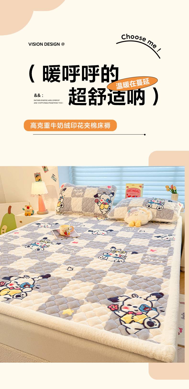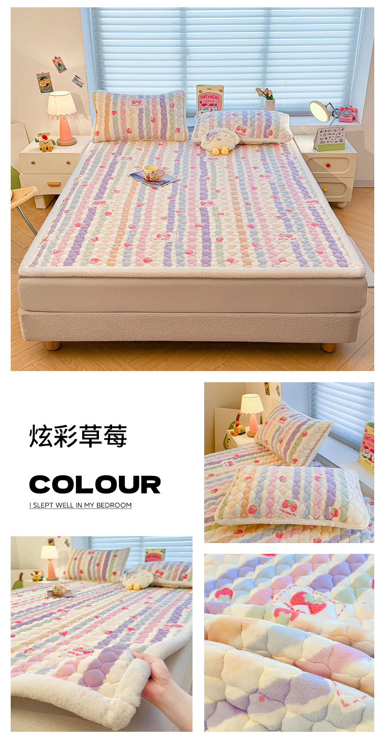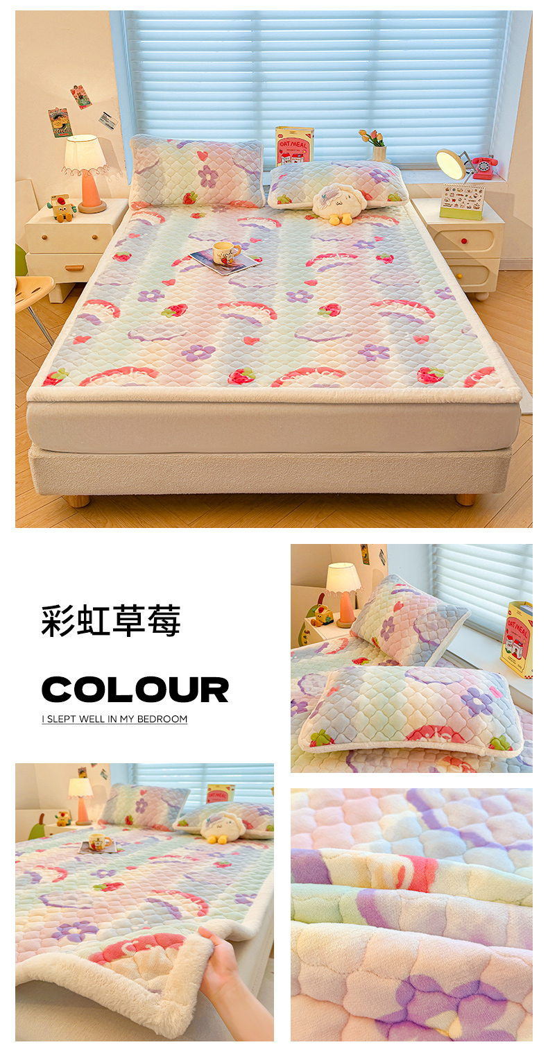 (总)喜居 2025新款A类水晶边牛奶绒夹棉床褥垫,嘟嘟狗,安睡熊,彩虹郁金香,草莓小兔,调皮点点,粉粉格,花丛小汪,欢乐熊猫,可爱狮子,兰格浅浅,莓烦恼,萌宠星空,梦幻bubu,苹果雪纳瑞,星月,幸运星