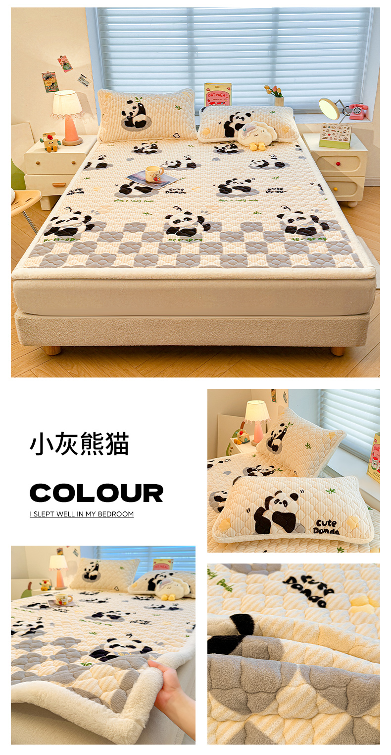 (总)喜居 2025新款牛奶绒卡通刺绣床褥垫-苹安熊,苹安熊-灰,苹安熊-咖,苹安熊-粉,苹安熊-蓝,苹安熊-绿