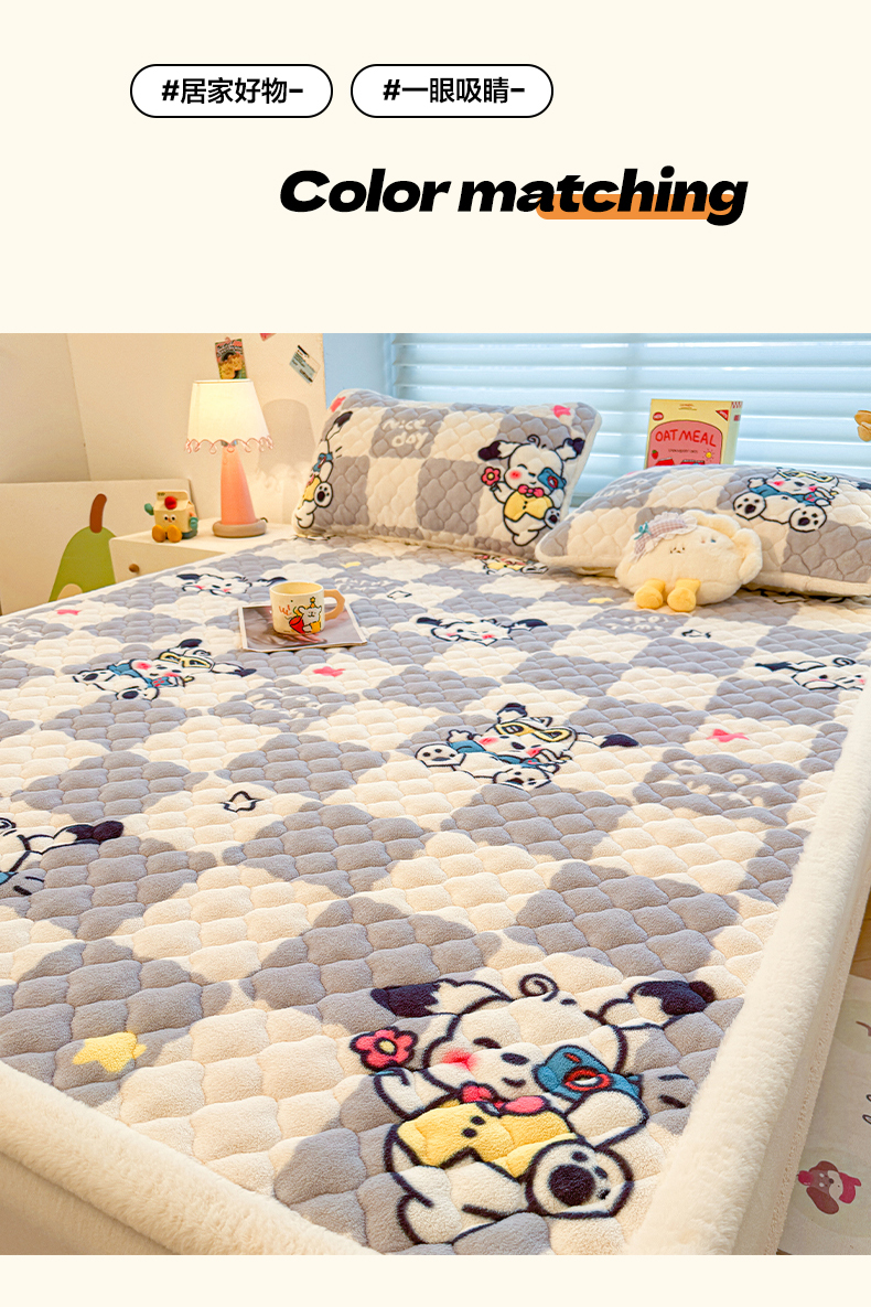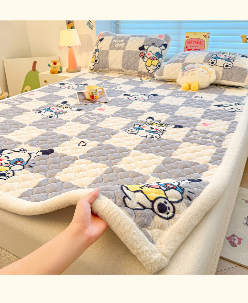(总)喜居 2025新款宝宝牛奶绒刺绣床垫班尼狗系列,班尼狗-粉,班尼狗-灰,班尼狗-咖,班尼狗-蓝,班尼狗-绿