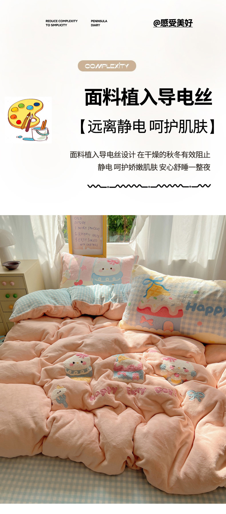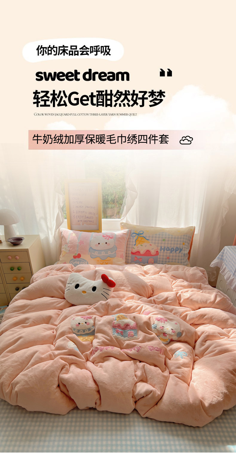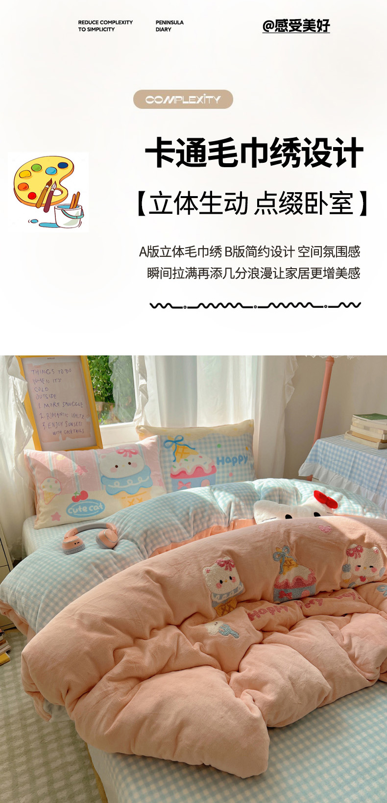 当前位置: 91家纺网 > 商品网购 > 床品套件 > 四件套 > 牛奶绒四件套 > 沐慕 2025新款牛奶绒加厚保暖毛巾绣四件套 牛奶绒-蛋糕kt