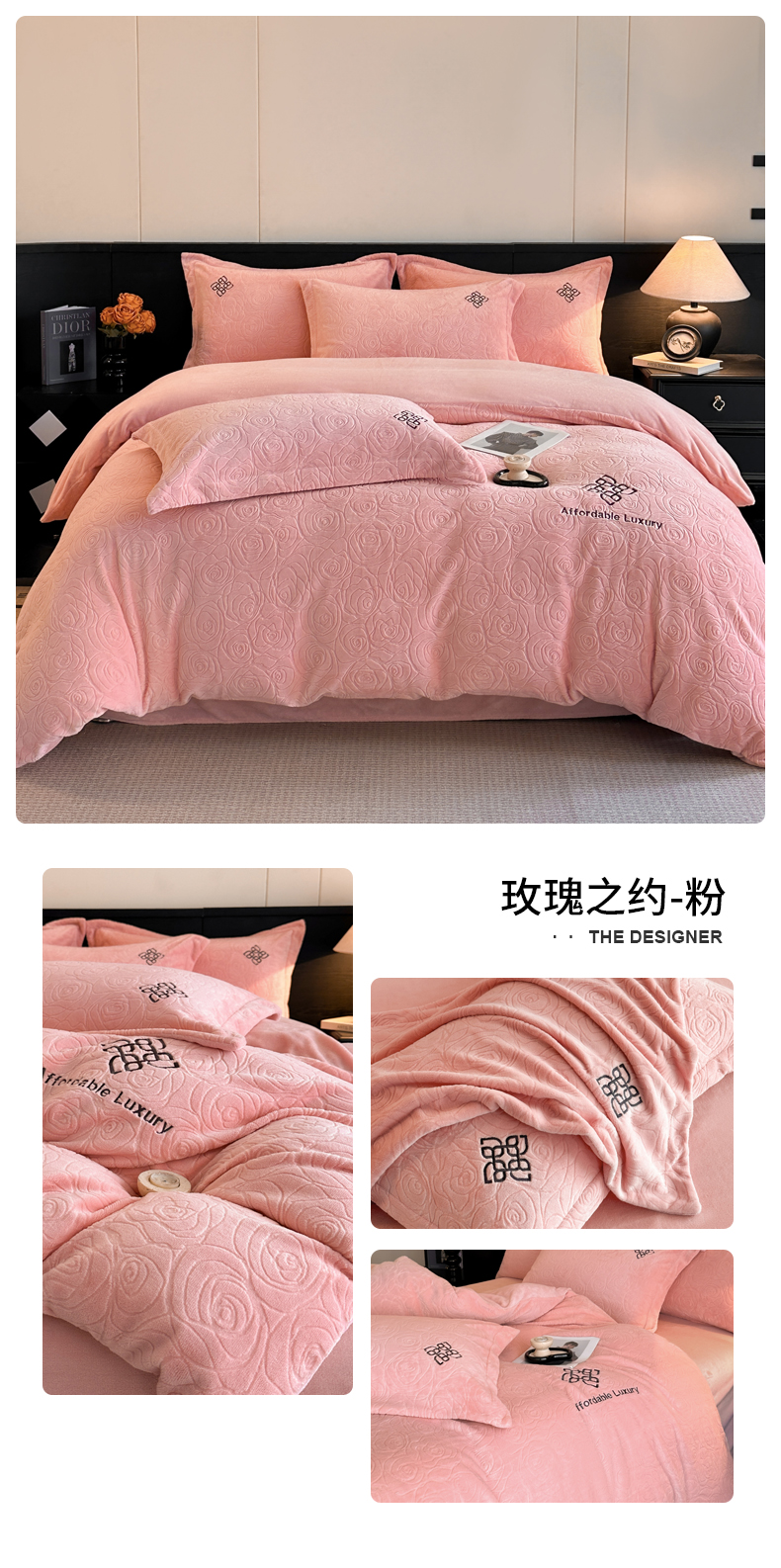 当前位置: 91家纺网 > 商品网购 > 床品套件 > 四件套 > 牛奶绒四件套 > 慕晨 2025新款立体提花绒简约风格高克重雕花加厚牛奶绒四件套 花季恋歌-粉