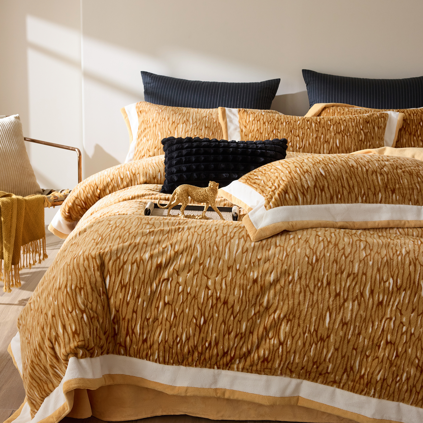 时亿家居 2025新款金貂绒牛奶绒四件套-秋日丝絮 秋日丝絮-卡灰