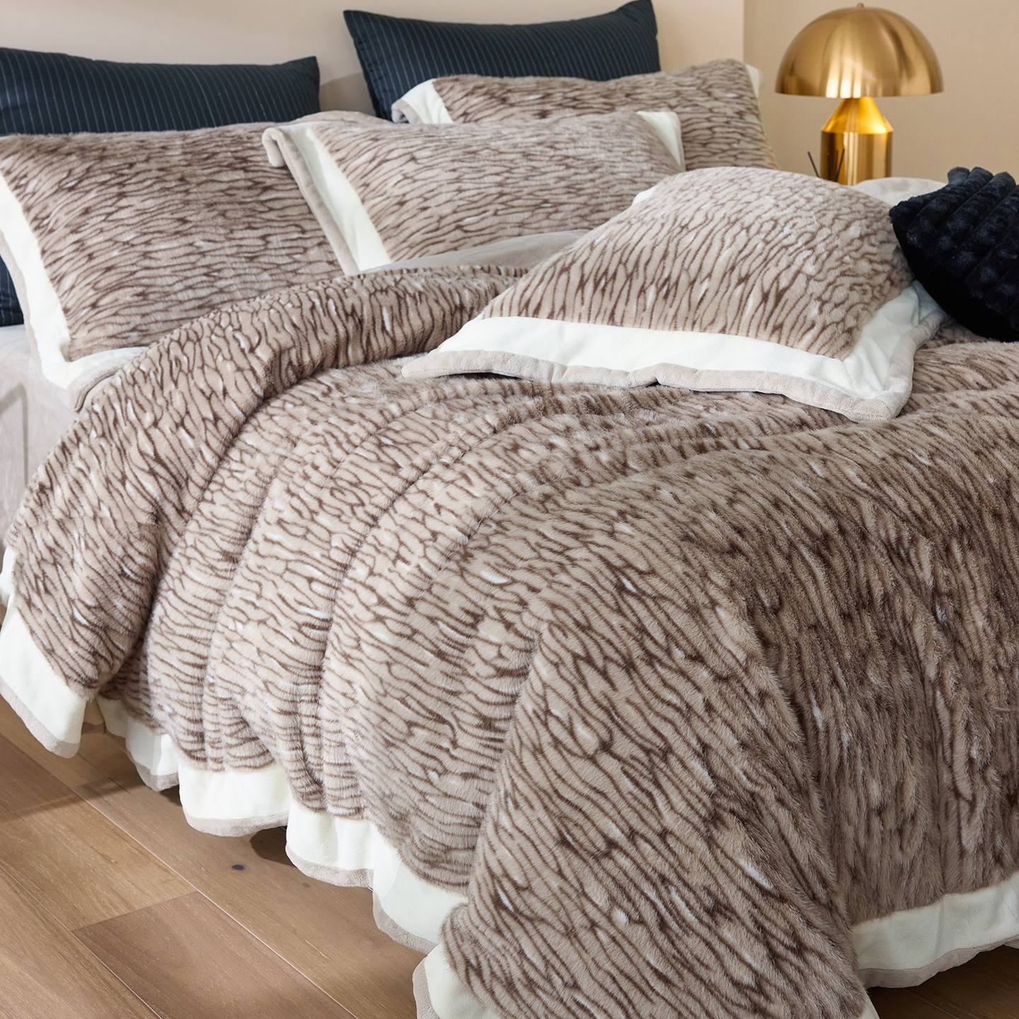 商品名称:时亿家居 2025新款金貂绒牛奶绒四件套-秋日丝絮 秋日丝絮-卡灰