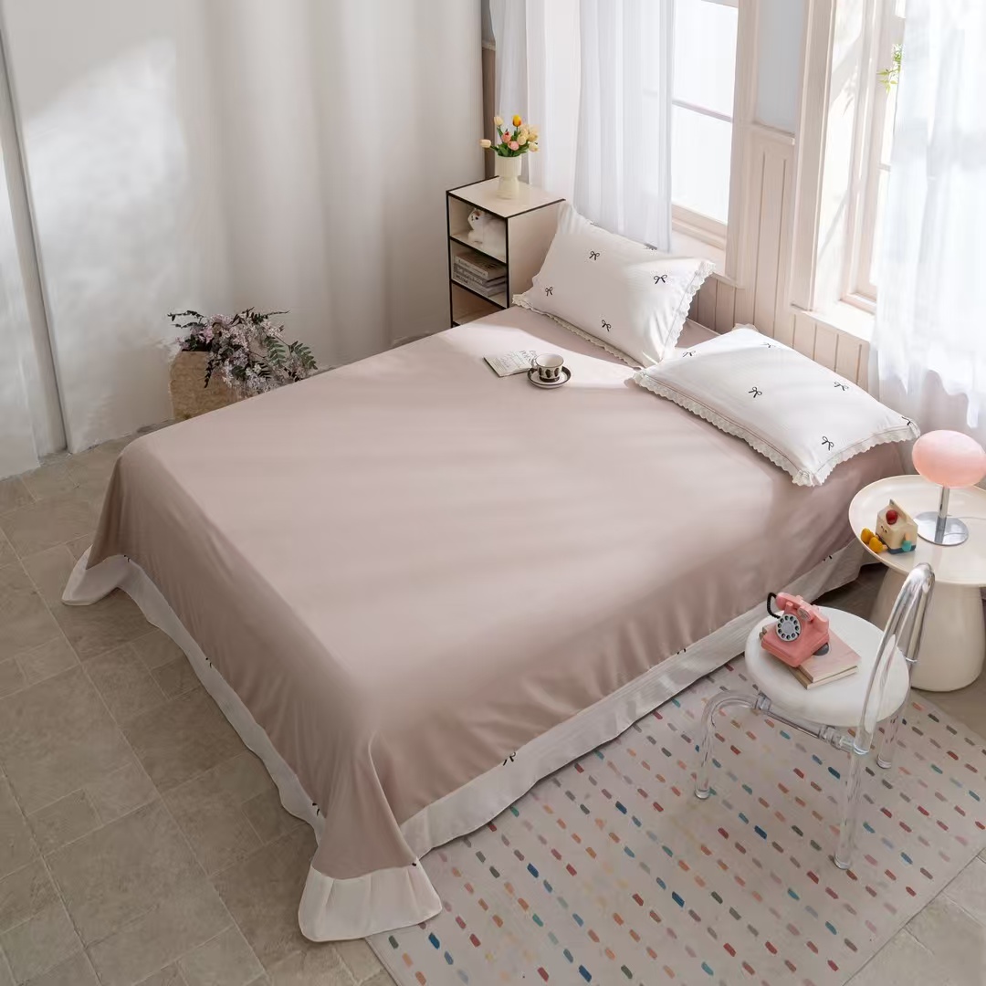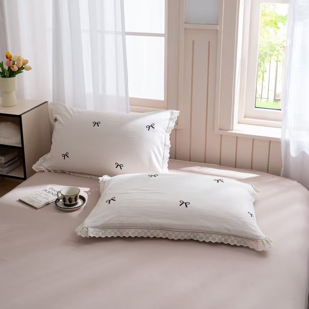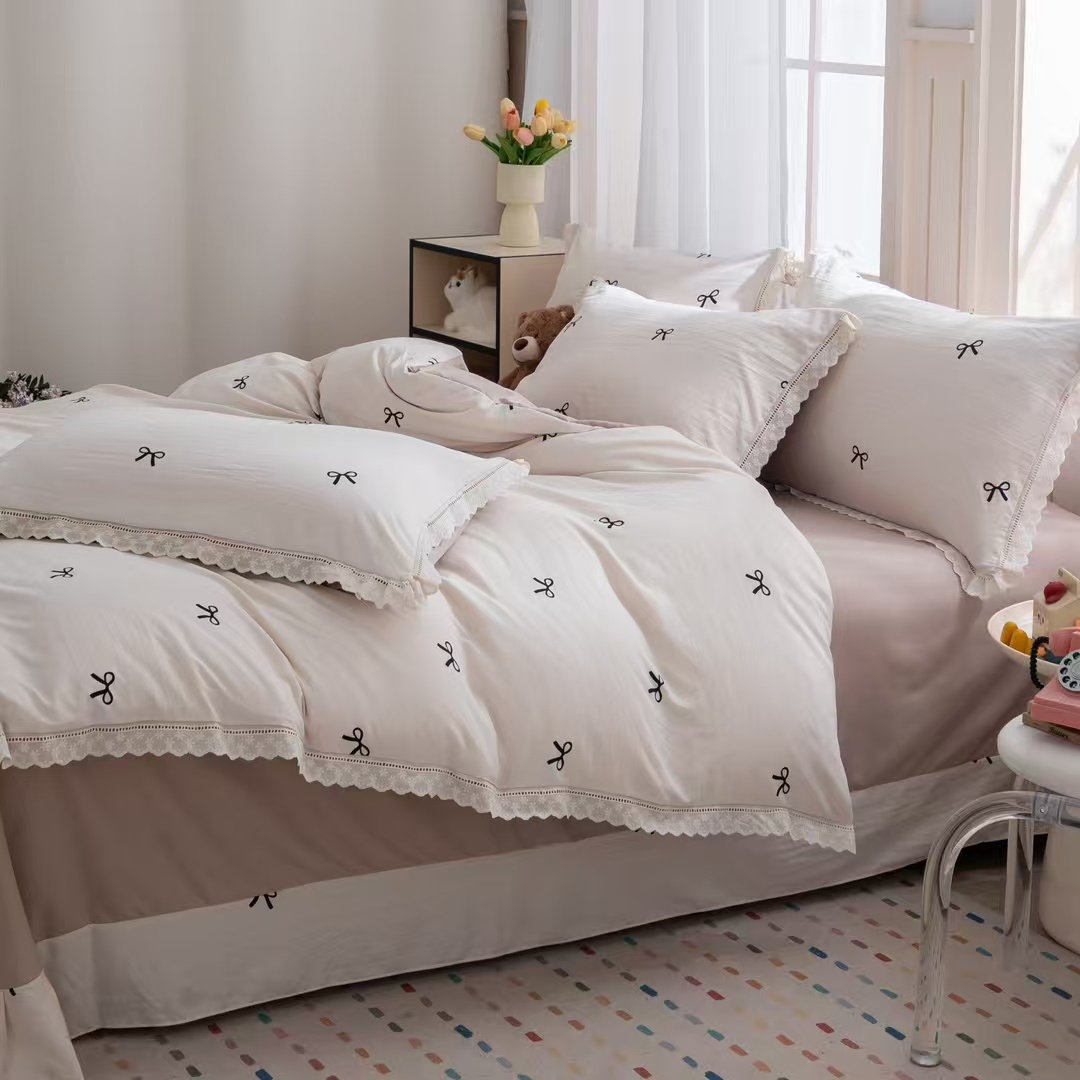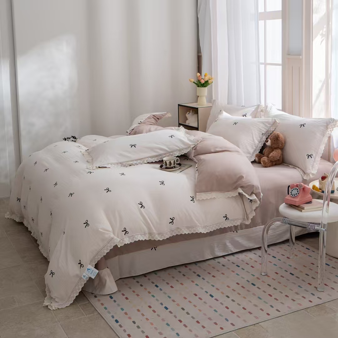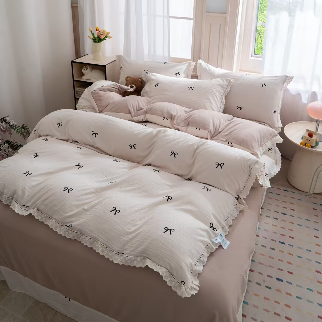 玖琳家纺 2025新款云朵水洗棉皱皱纱精致花边款四件套 碟引舞纱