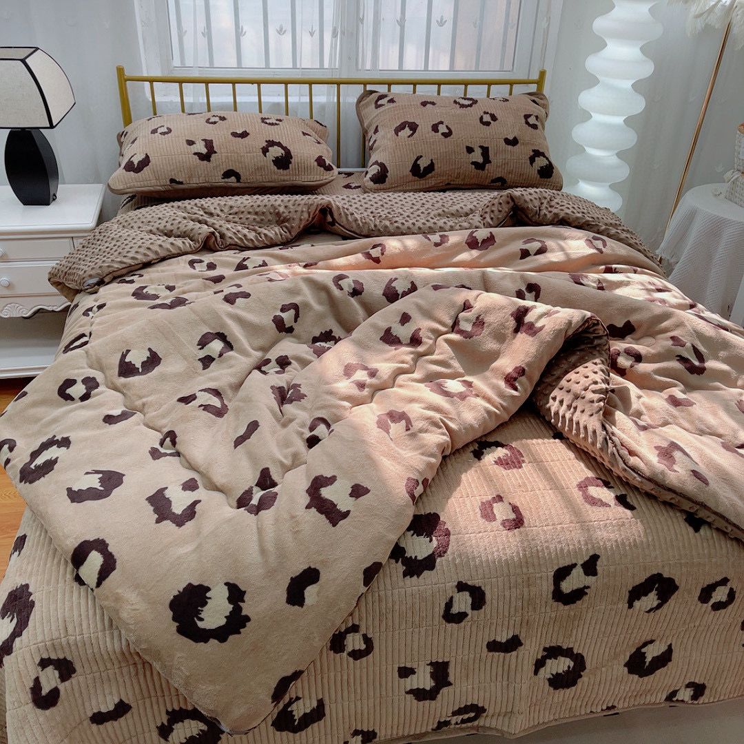 (总)暖居 2025新款加厚牛奶绒豆豆被床盖四件套跑量款,咖色大波点,爱心小熊,潮牌咖,蛋糕熊,黑玫瑰,幻蝶,经典豹纹,奶白大波点,时尚豹纹,香肠狗,印象,英伦,紫花香草