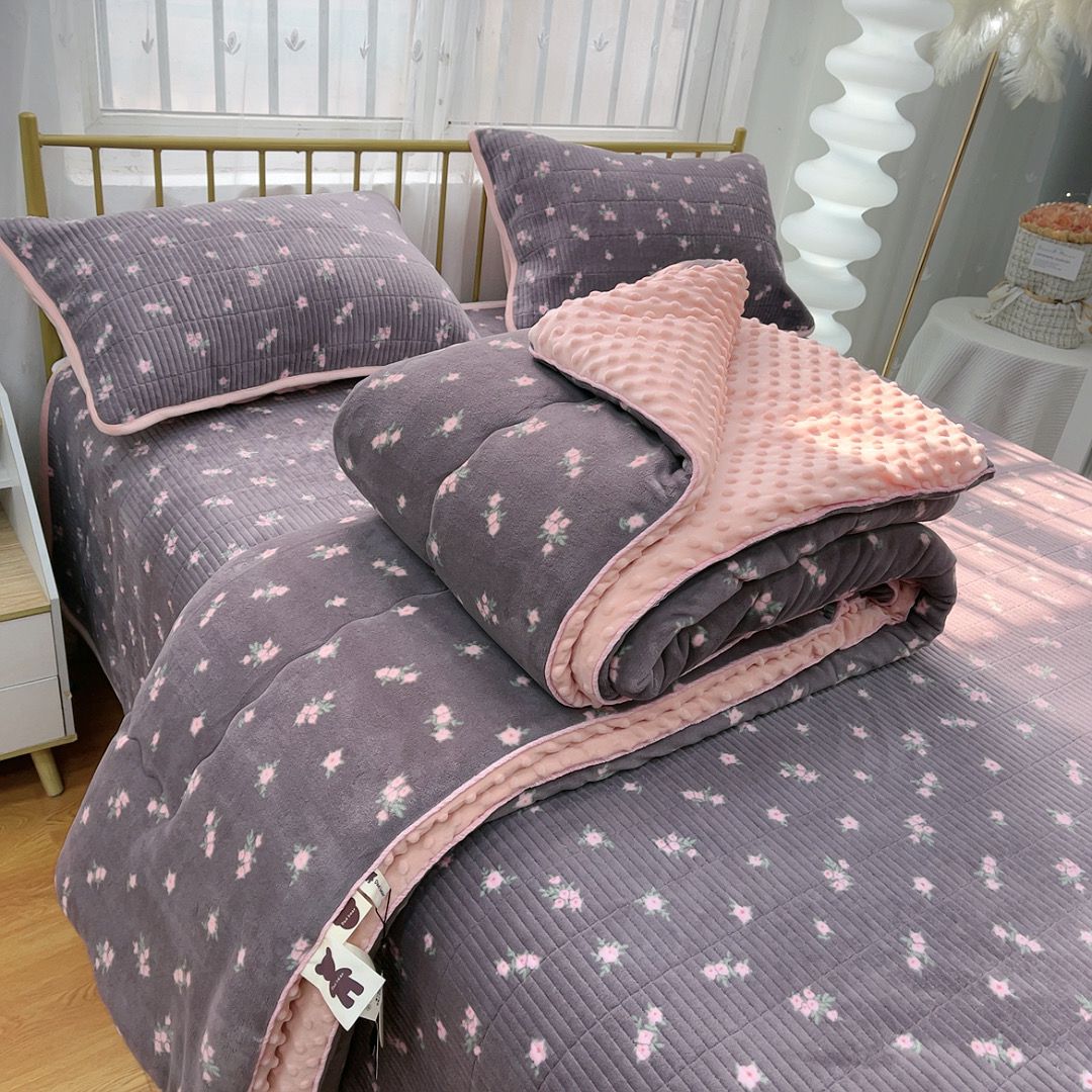 暖居 2025新款加厚牛奶绒豆豆被床盖四件套跑量款 幻蝶