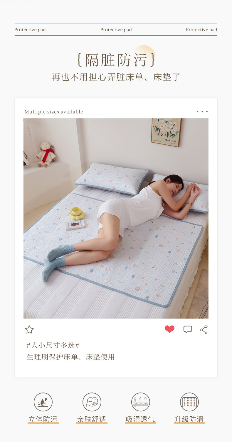 当前位置: 91家纺网 > 商品网购 > 床垫/床褥 > 普通床垫 > 拾小柒 2025年新款全棉双层纱隔脏姨妈垫护理垫床护垫 萌趣森林蓝-不防水款