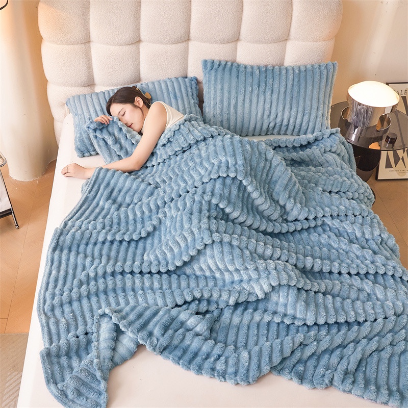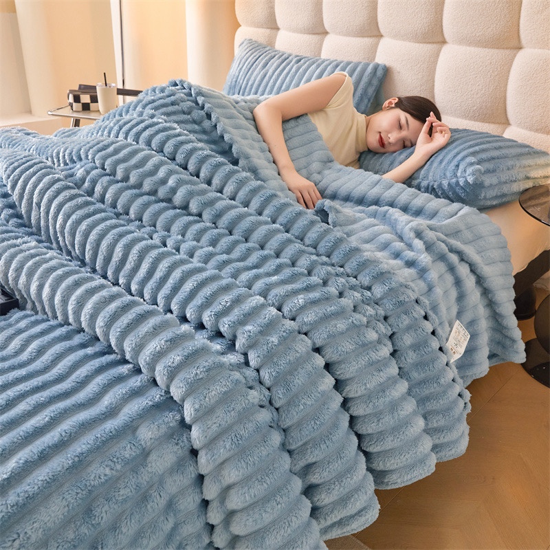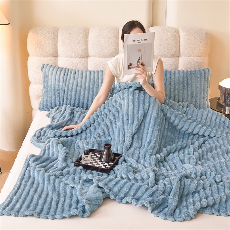 商品名称:玖琳家纺 2025新款多功能抽条兔兔毛绒毯 蓝色