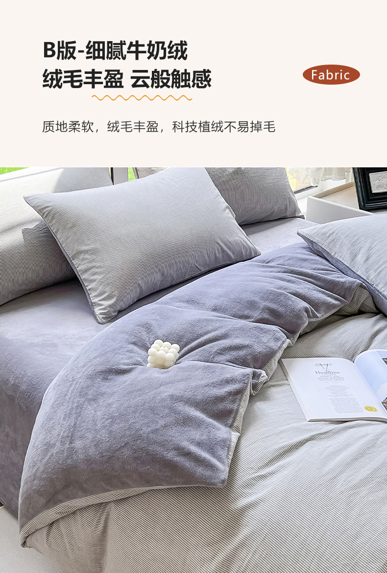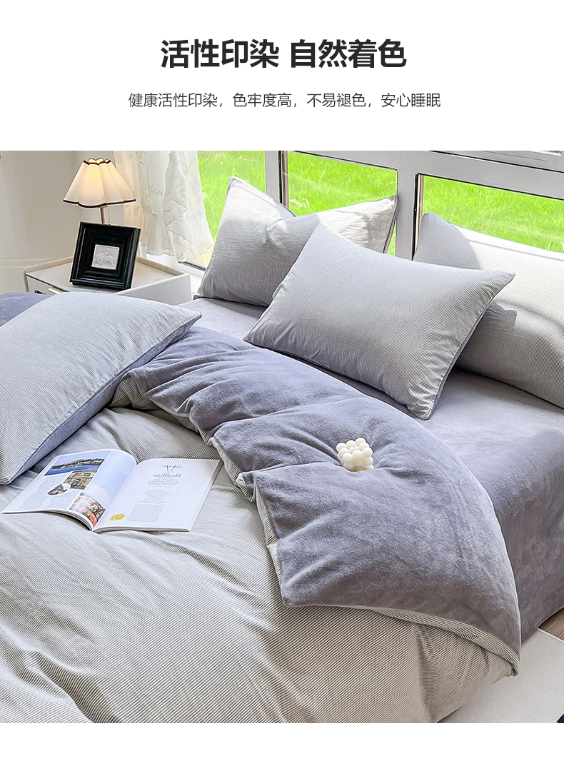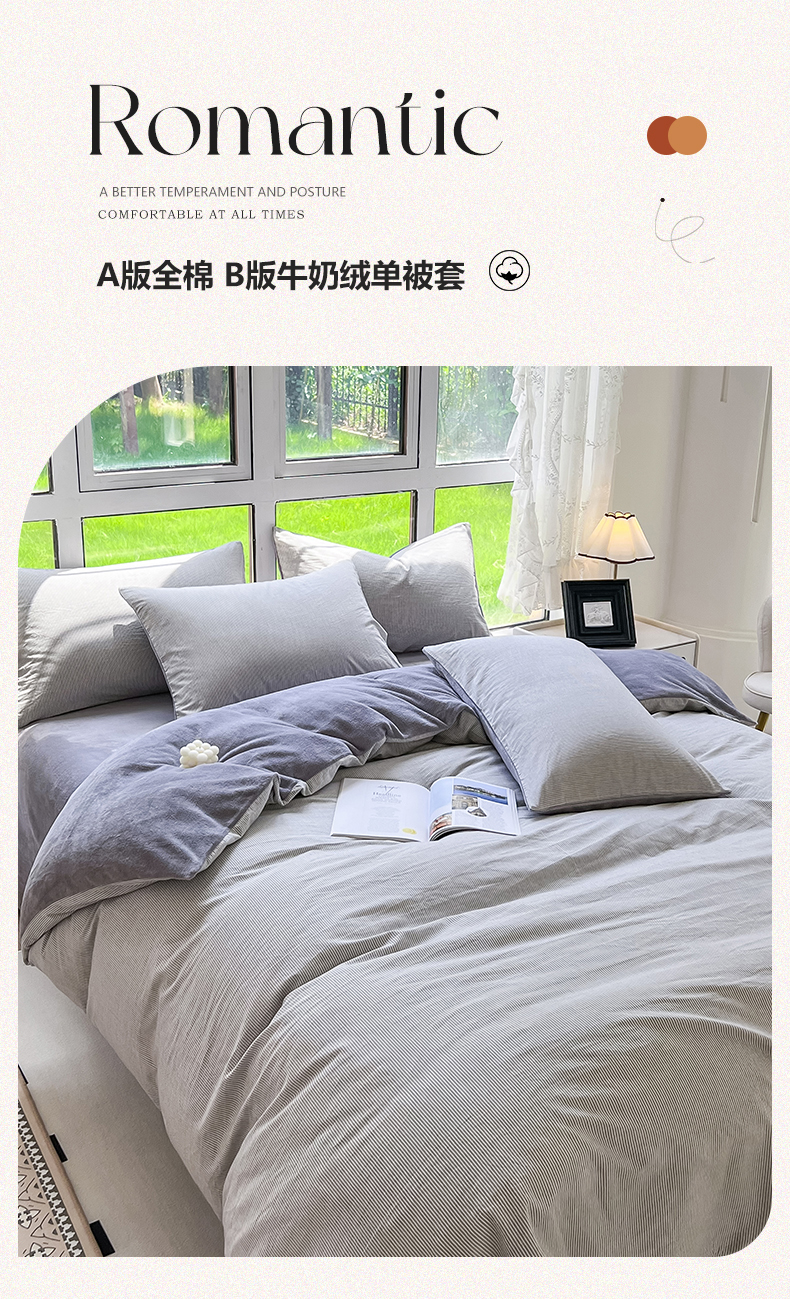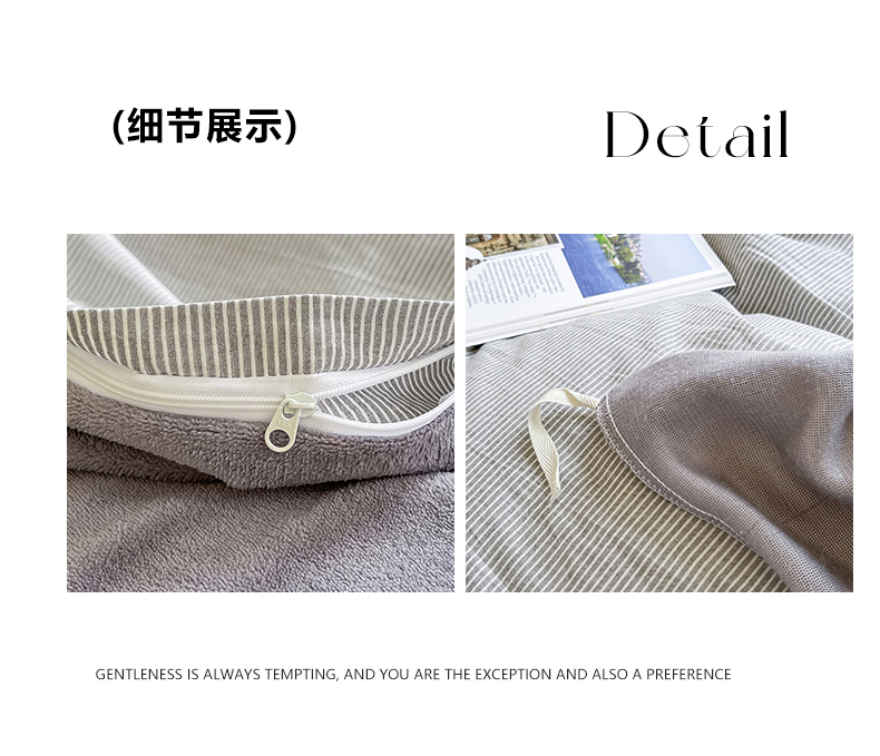 • 91家纺网 家纺一手货源 找家纺 柠萌家居 2025新款无印良品风双拼全棉色织水洗棉加牛奶绒单品被套简约风全棉拼牛奶绒单被套 棉+绒-灰极细条