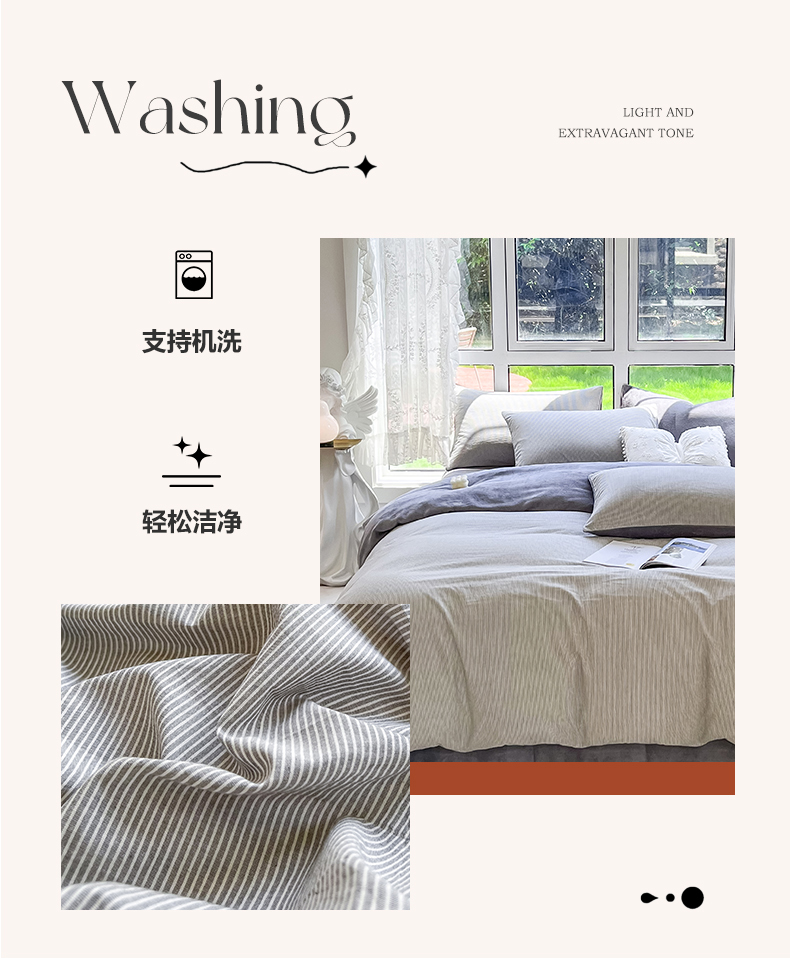 (总)柠萌家居 2026新款色织水洗棉四件套单被套,粉极细条,粉紫条,黄咖条,灰极细条,蓝咖条,绿极细条,绿紫条,米极细条,驼红条