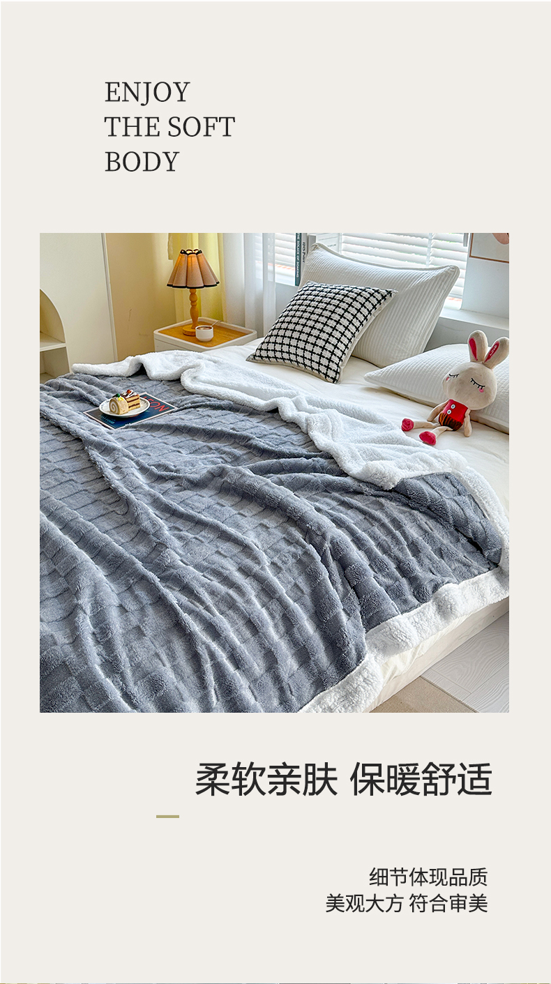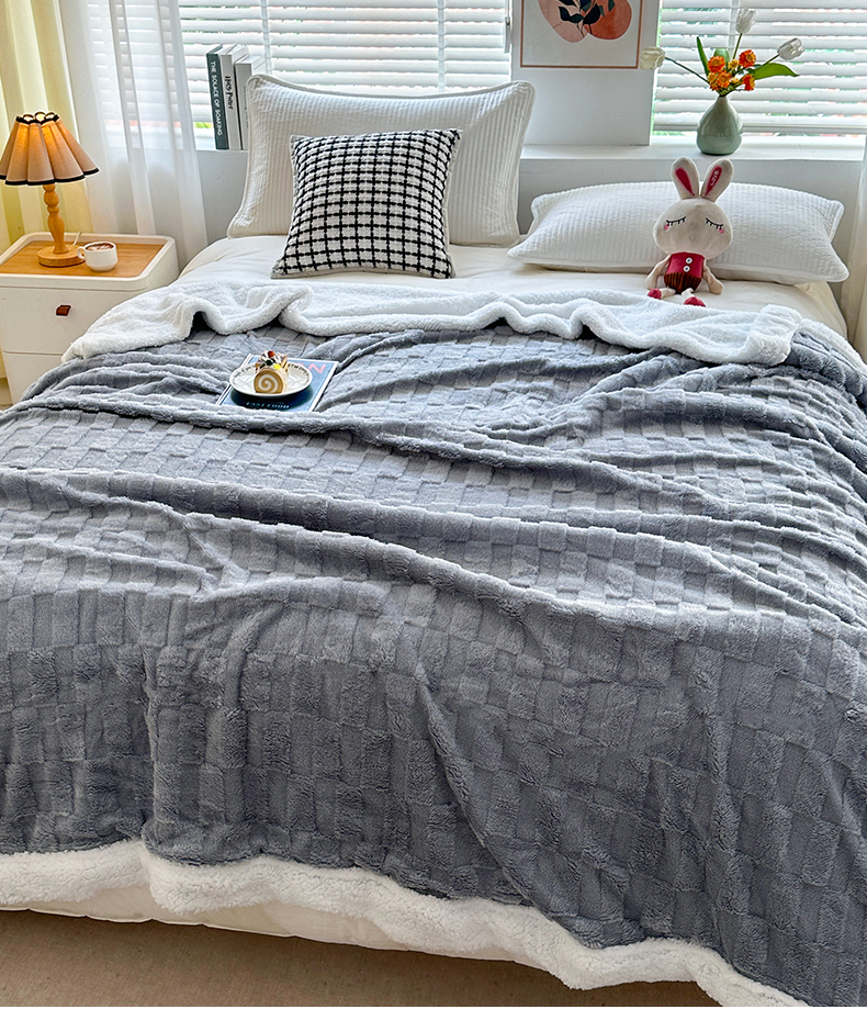 当前位置: 91家纺网 > 商品网购 > 毛毯休闲毯绒毯 > 毛毯 > 佳居缘 【双面绒-方格】 2025加厚保暖羊羔绒毛毯双层塔芙绒毯子跨境专供外贸出口定制 方格-灰蓝