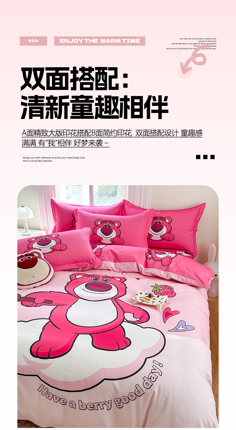 (总)眷恋家纺 2025新款卡通全棉印花四件套,草莓梦-米,大明星-米,黛西米妮-米,酷奇-咖,泡泡米妮-粉,时尚感-粉,探险家-灰,甜蜜的梦-兰,外星仔-兰,嘻哈风-桔,小精灵-米,拥抱爱-米,公主的梦,休闲时光-米