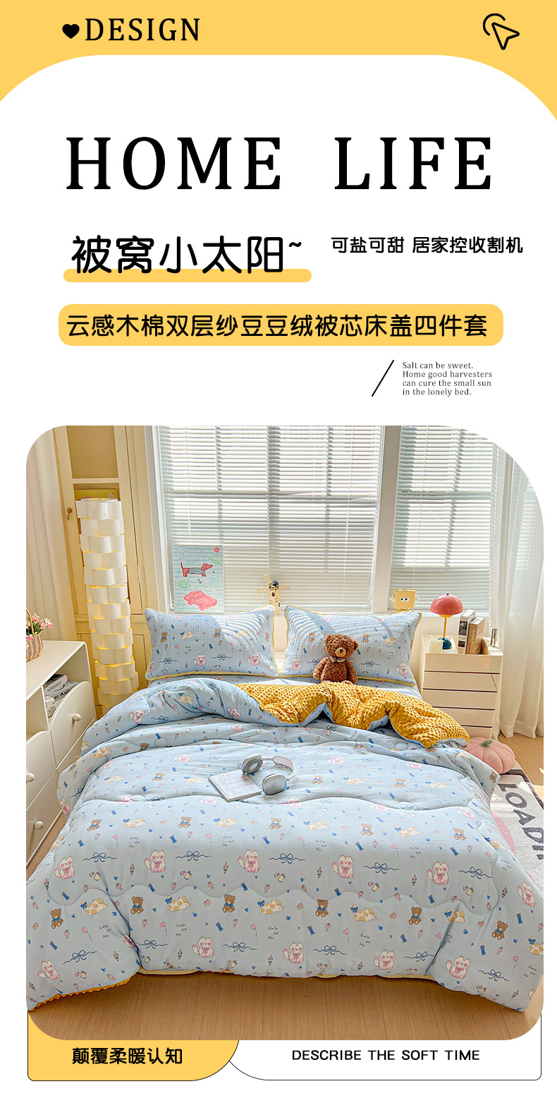 当前位置: 91家纺网 > 商品网购 > 床品套件 > 四件套 > 其它四件套 > 暖芯优选 2025新款木棉双层纱ins少女心可爱系加厚豆豆冬被四件套床盖三件套暖梦系列(小红书推荐) 童话世界