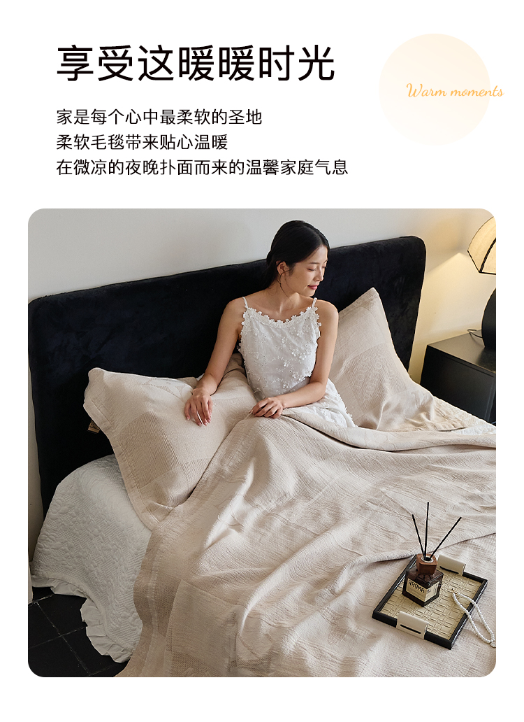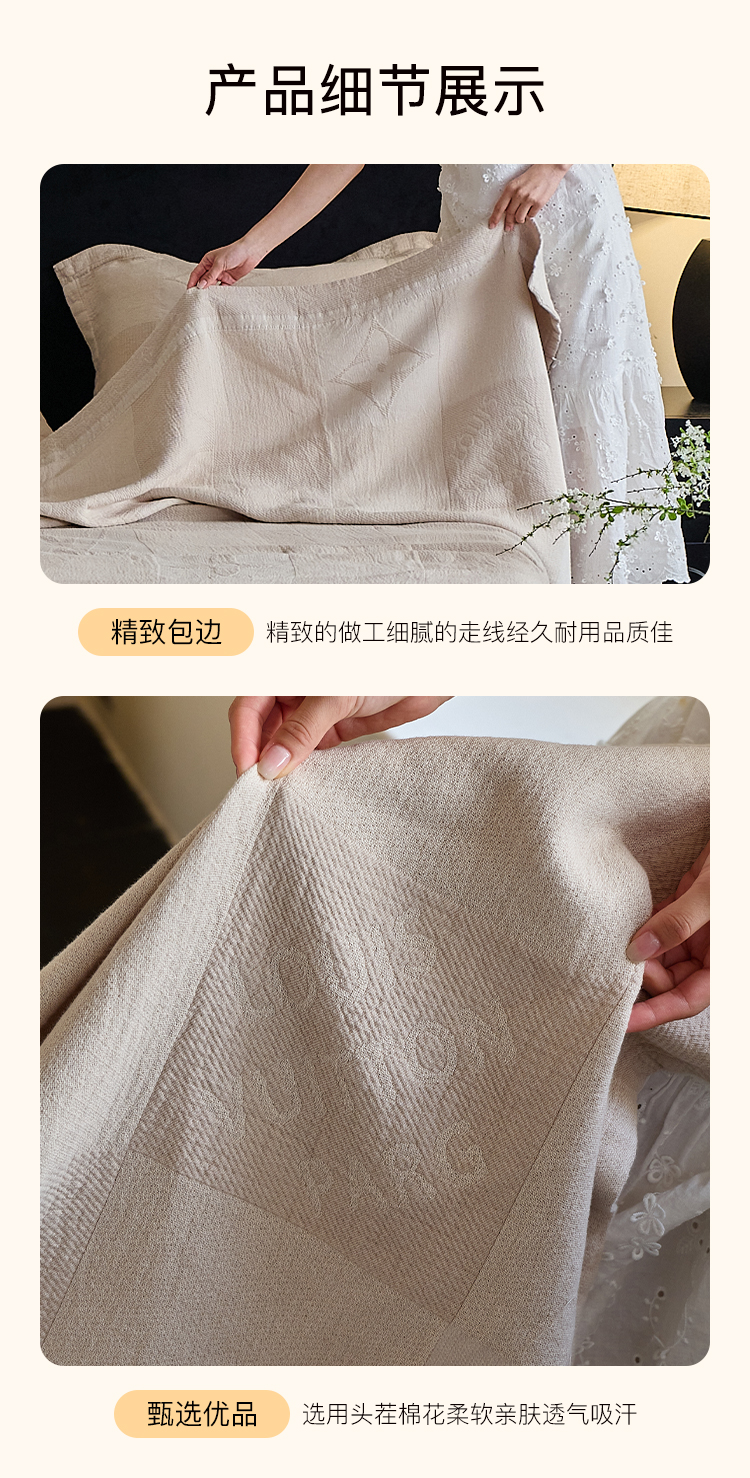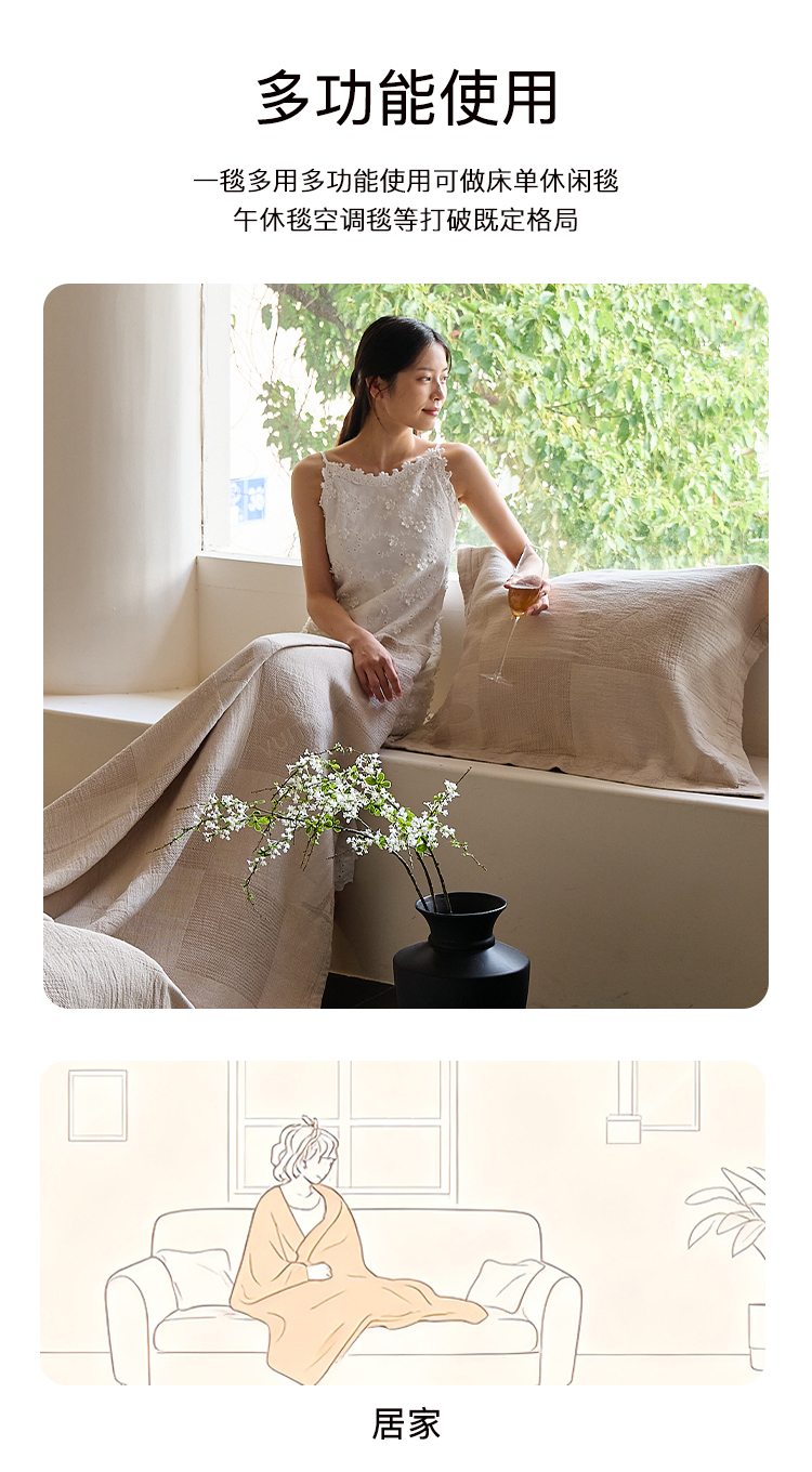 (总)沐瑟家纺 2025新款简约风多功能纱布盖毯纱布毯子毛巾被床盖沙发巾单毯枕巾枕套三件套,H本色,H橙色,H咖色,大马士革本色