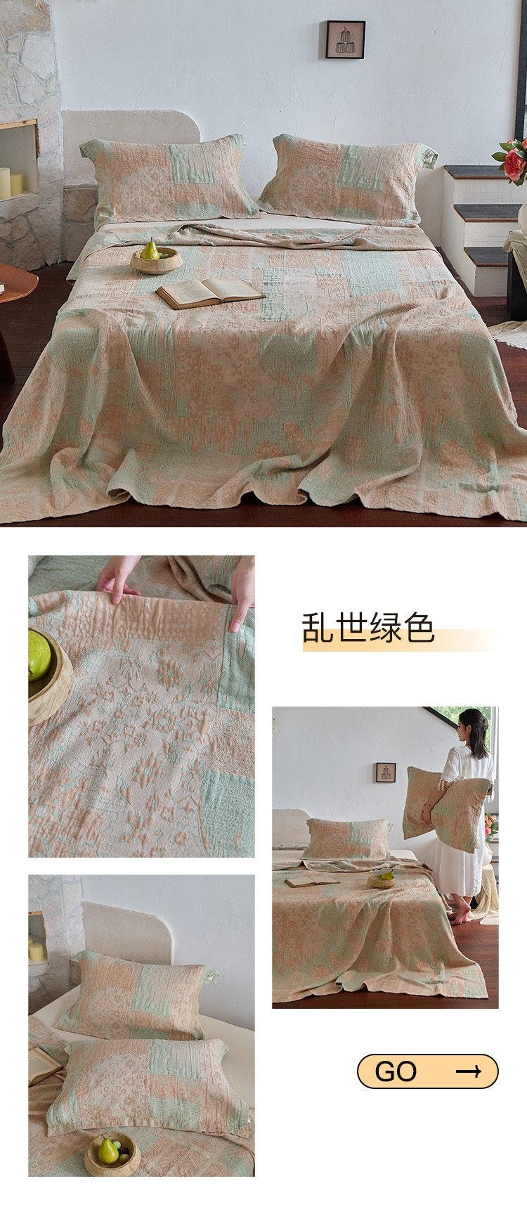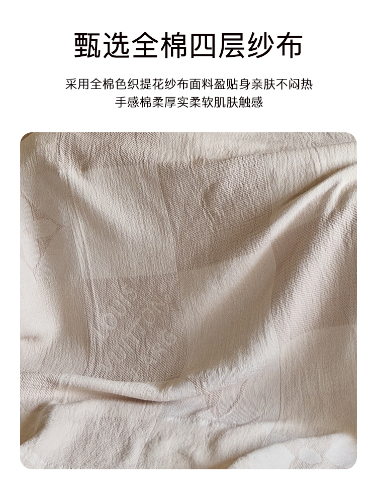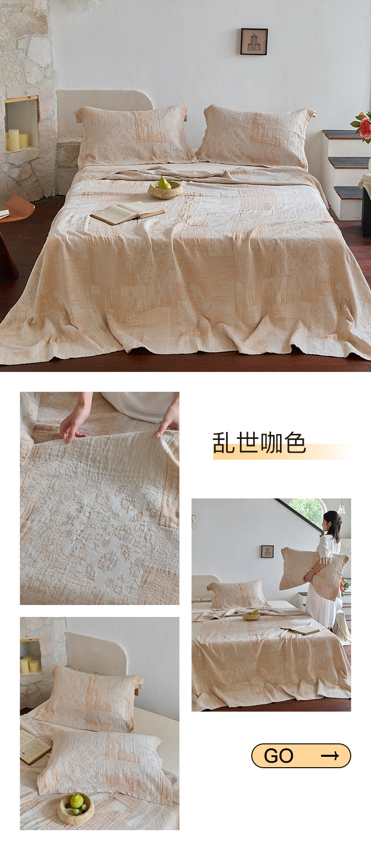 商品名称:沐瑟家纺 2025新款全棉纱布双层纱床盖三件套床盖 LV本色