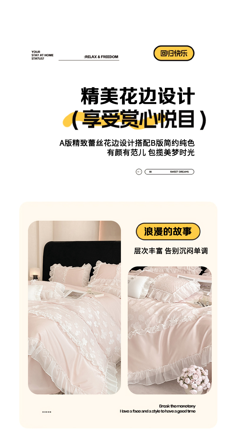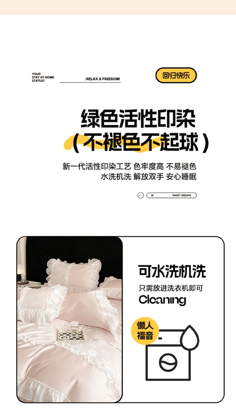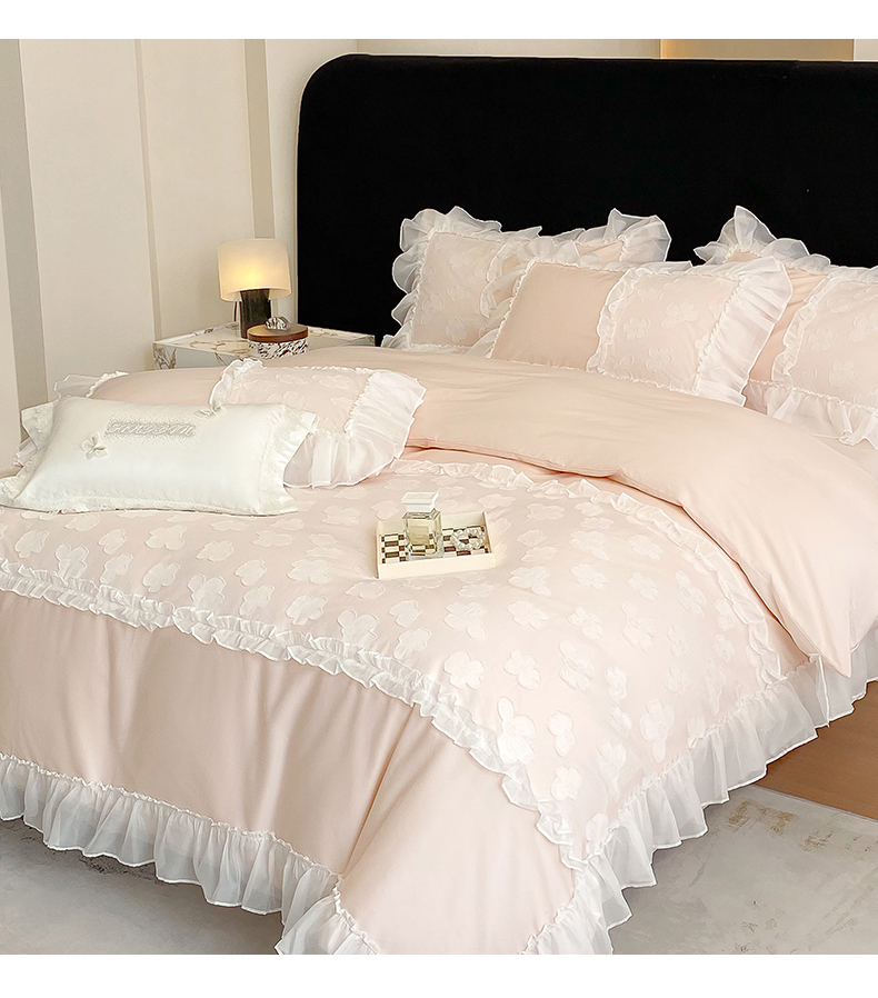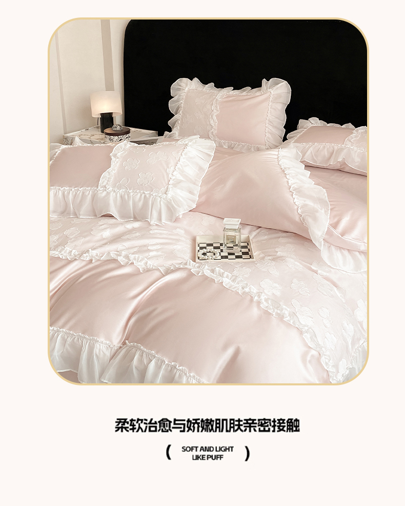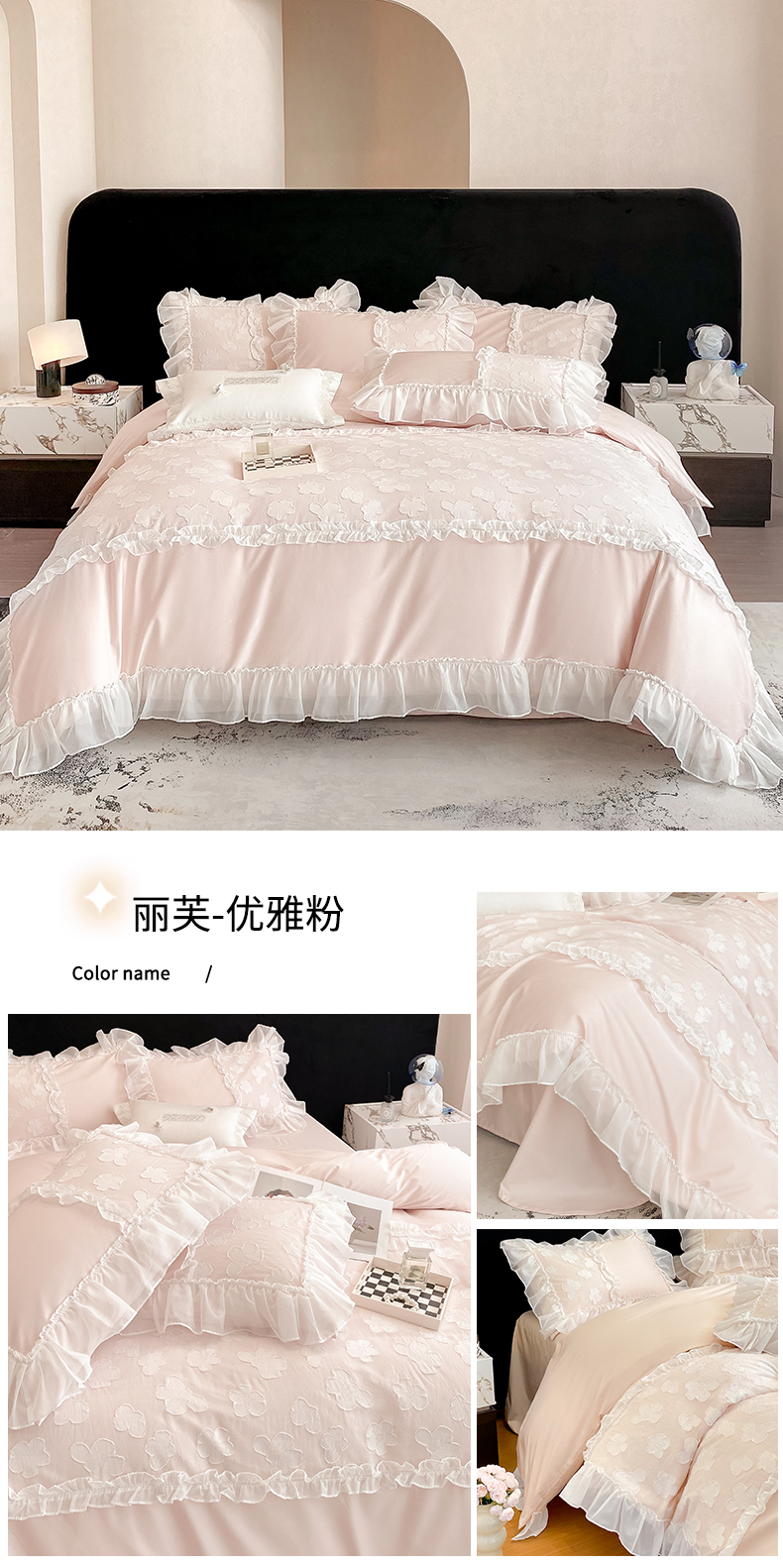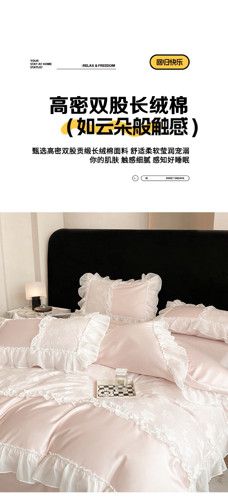 商品名称:丞音 2025新款法式轻奢A类长绒棉50s双股100支贡缎全棉被套纯棉四件套床笠高档礼盒包装-丽芙系列 丽芙-优雅粉