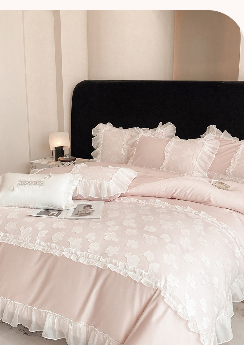 丞音 2025新款法式轻奢A类长绒棉50s双股100支贡缎全棉被套纯棉四件套床笠高档礼盒包装-丽芙系列 丽芙-优雅粉