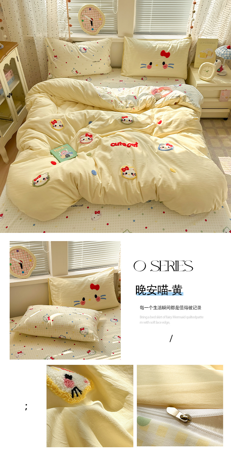 当前位置: 91家纺网 > 商品网购 > 床品套件 > 四件套 > 毛巾绣四件套 > 彩韵家纺 2025新款水洗棉毛巾绣可爱猫咪系列 晚安喵-蓝