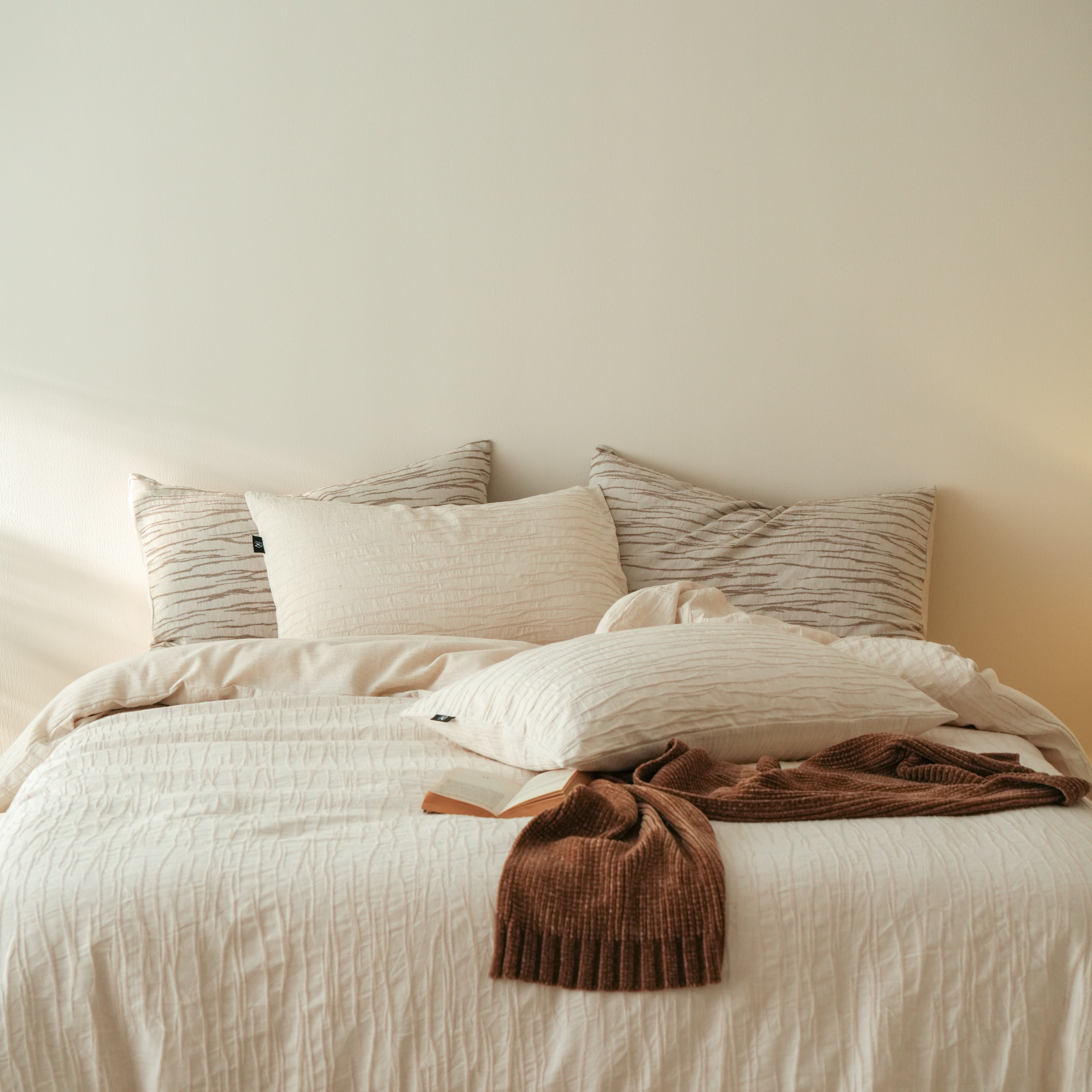 (总)旷野2025新款全棉纯棉色织空气层提花泡泡纱四件套,悉尼海岸-灰,悉尼海岸-蓝,悉尼海岸-棕