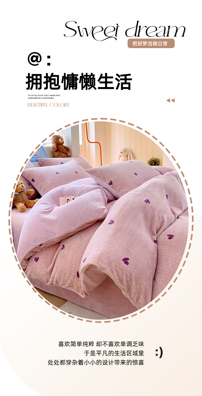 当前位置: 91家纺网 > 商品网购 > 床品套件 > 四件套 > 牛奶绒四件套 > YYDS网供 2025新款ins风牛奶绒四件套萌趣卡通三件套花卉单被套秋冬软fufu防静电 条纹爱心如愿